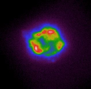 该图使用IXPE在1月11日至18日期间收集的X射线数据创建而成,显示了“仙后座A”X射线强度。颜色从冷紫色、蓝色到红色、白色对应的是X射线亮度的增加。