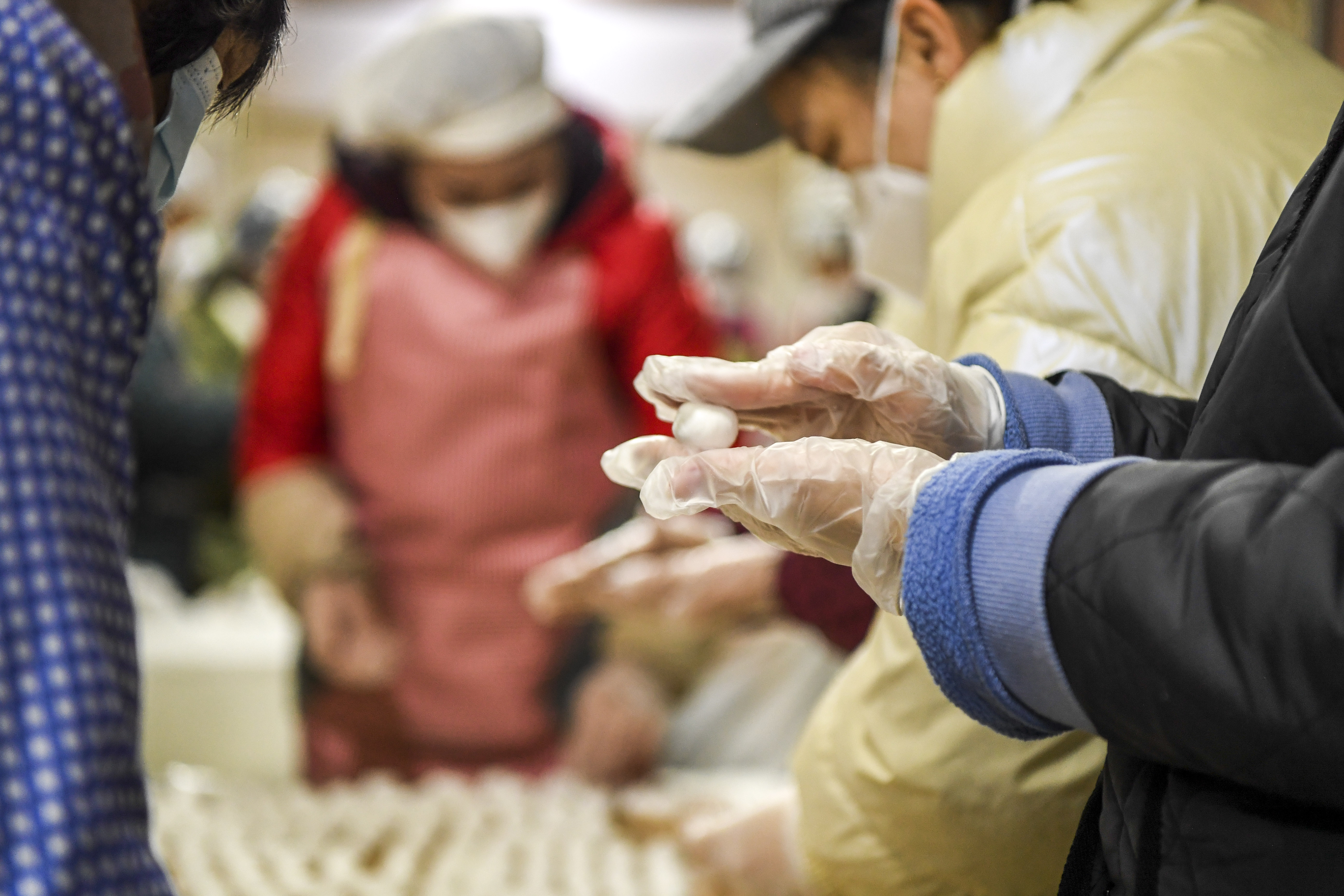 听到门外热情的呼喊,姚雪婷和同事们暂时放下手中的工作,接过志愿者送上的热腾腾的汤圆。