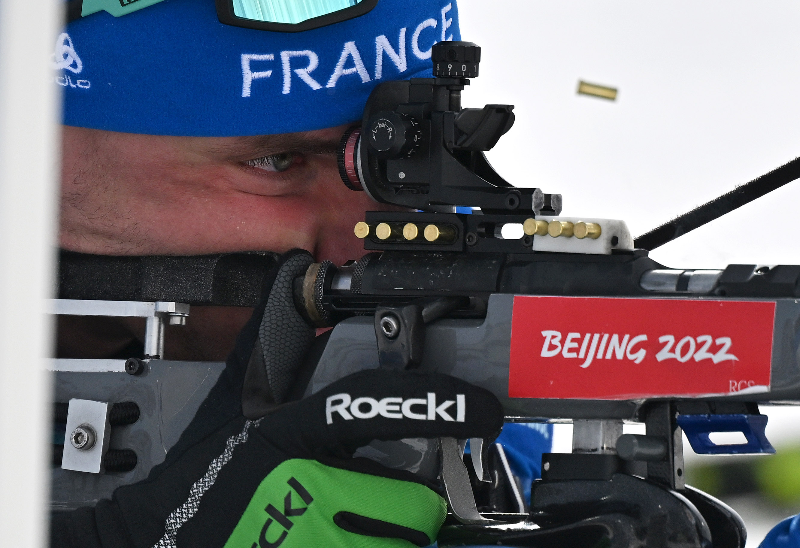 2月15日,亚军法国队选手埃米利安·雅克兰在比赛中射击。 新华社记者郭程摄