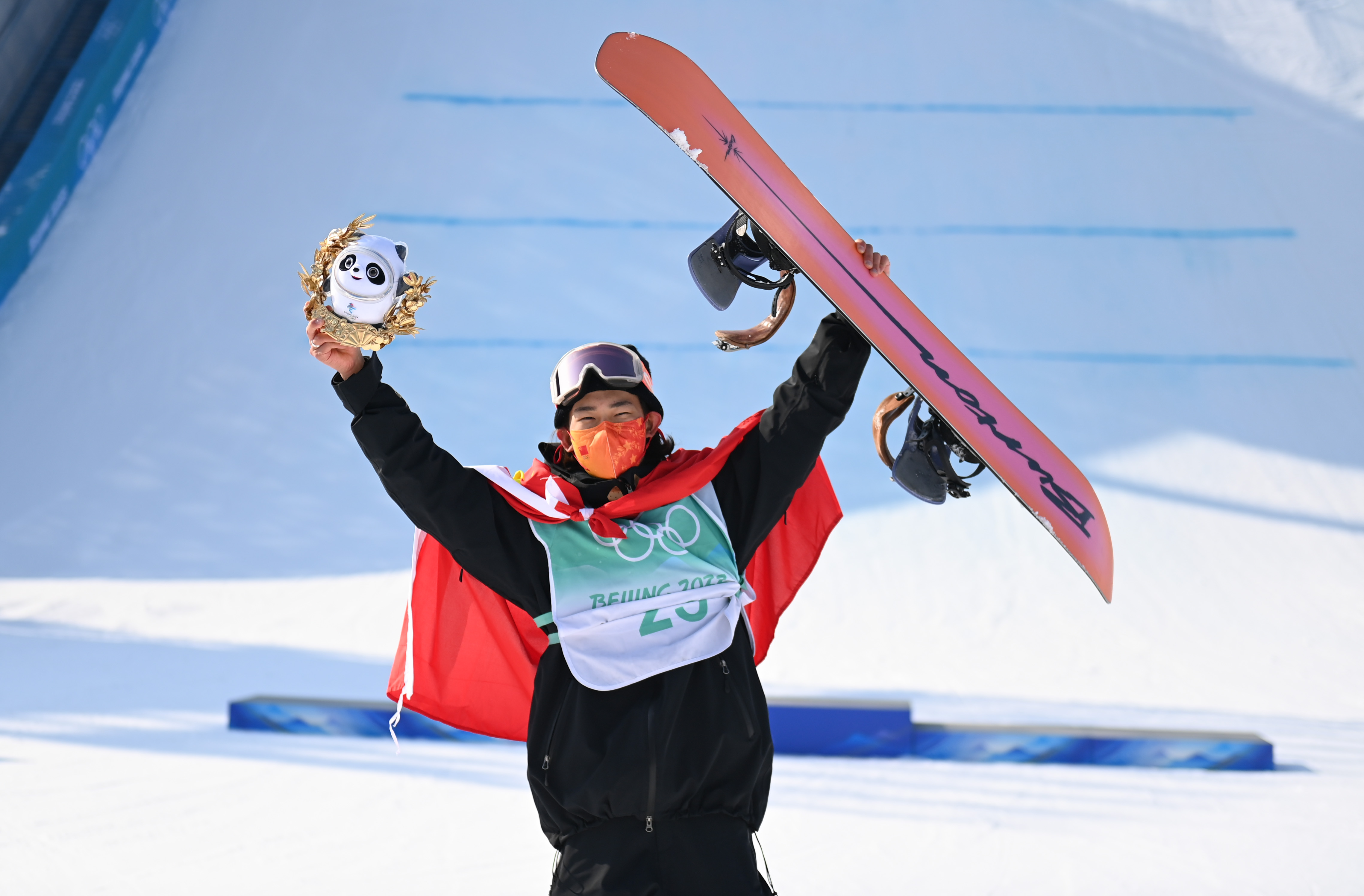 2月15日,中国选手苏翊鸣在北京冬奥会单板滑雪男子大跳台决赛中夺冠。新华社记者黄宗治摄