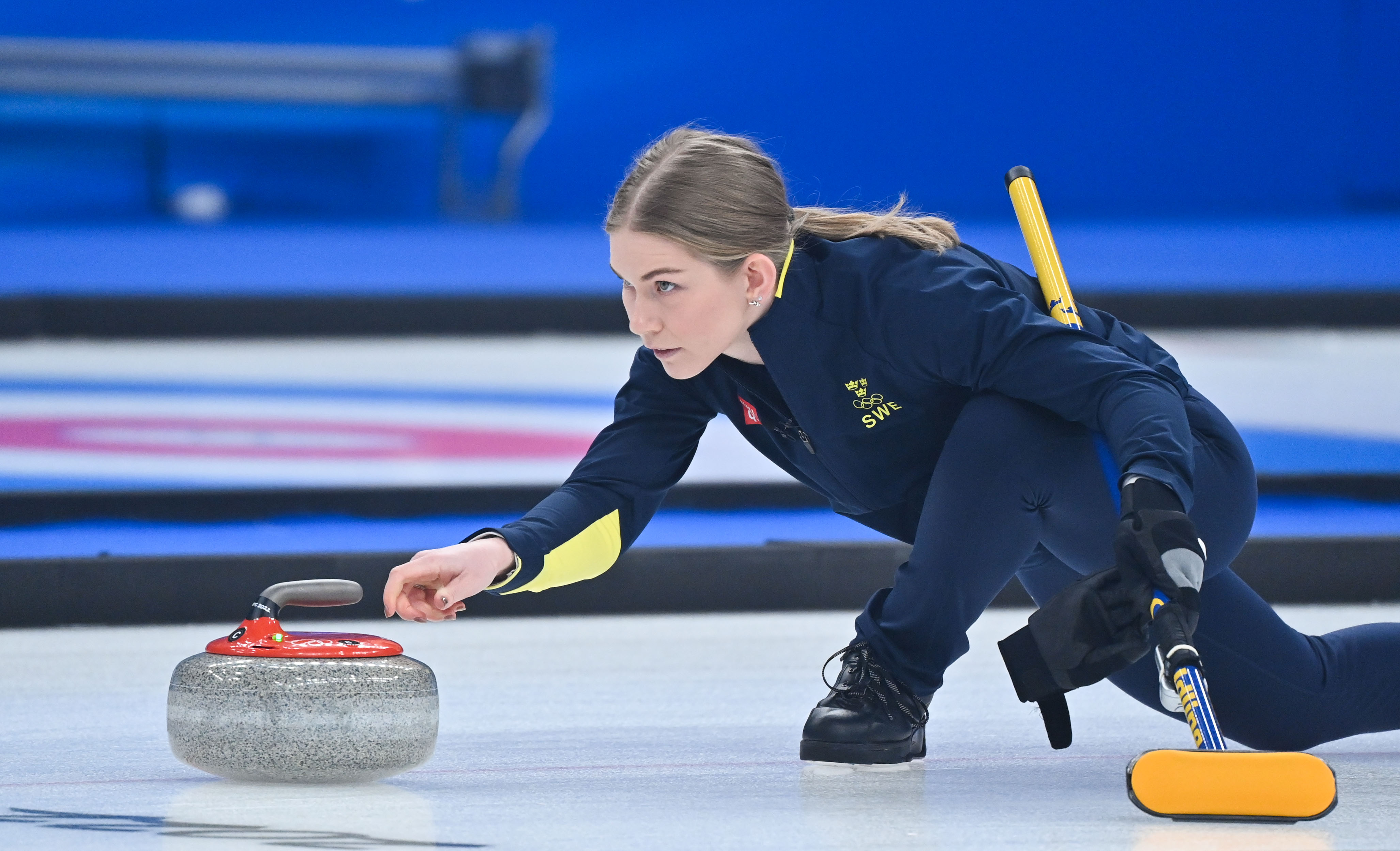 2月8日,瑞典队选手阿尔米达·德瓦尔在北京冬奥会冰壶混双铜牌赛比赛中。新华社记者黄孝邦摄