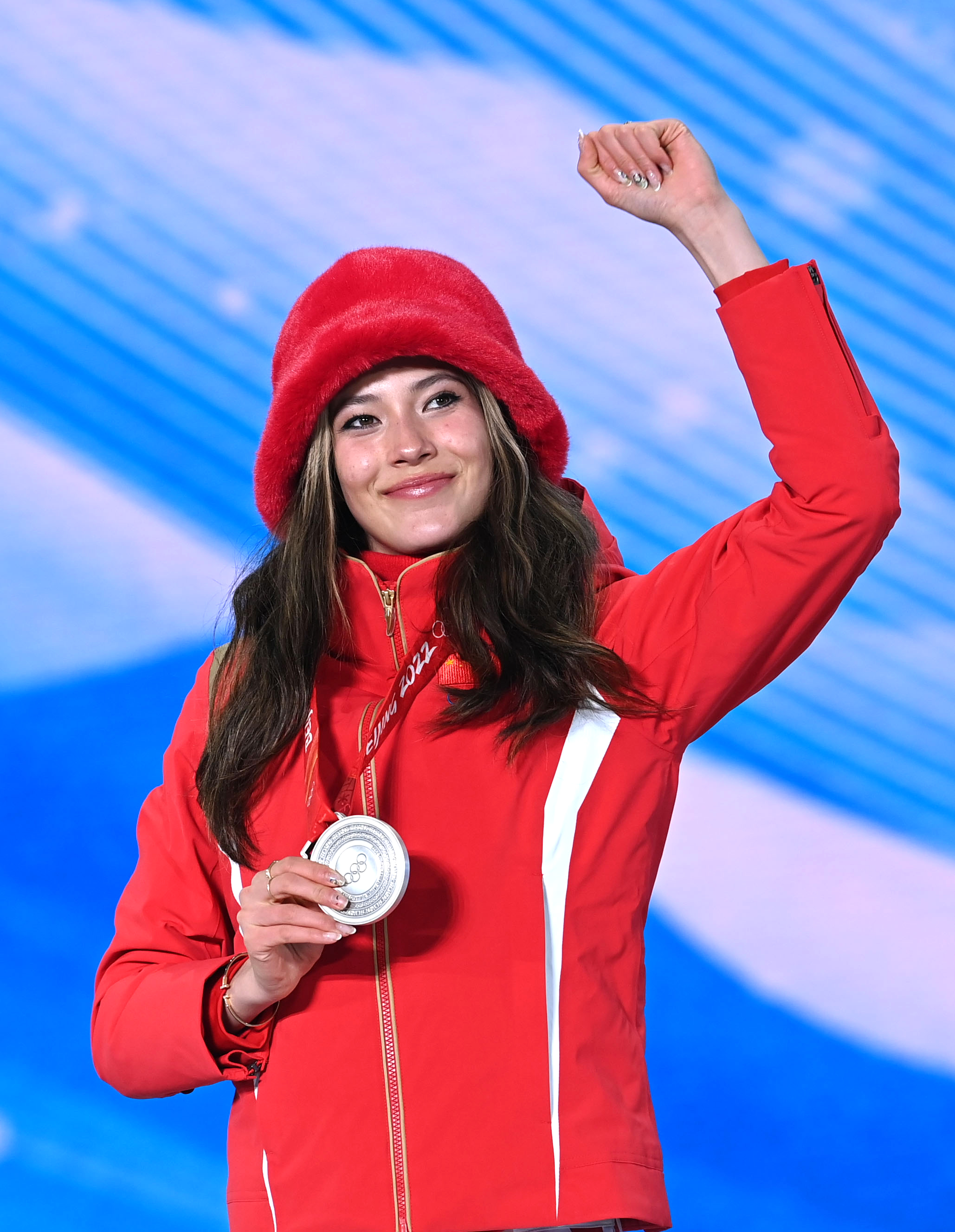 2月15日,谷爱凌在北京冬奥会自由式滑雪女子坡面障碍技巧的奖牌颁发仪式上。新华社记者胡虎虎摄