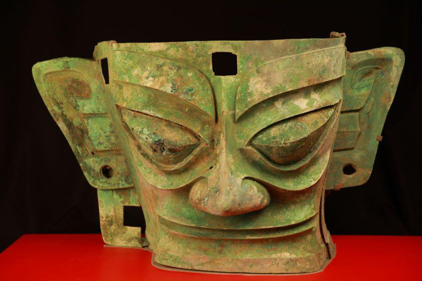 惊艳亮相!三星堆青铜大面具首次正式展出。