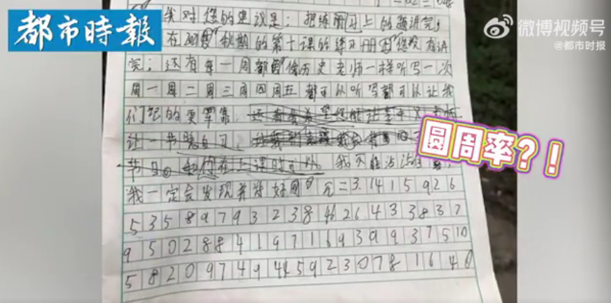 ·四川宜宾男孩用圆周率凑2000字检讨书,姐姐:大家笑的时候尽量不要太大声。