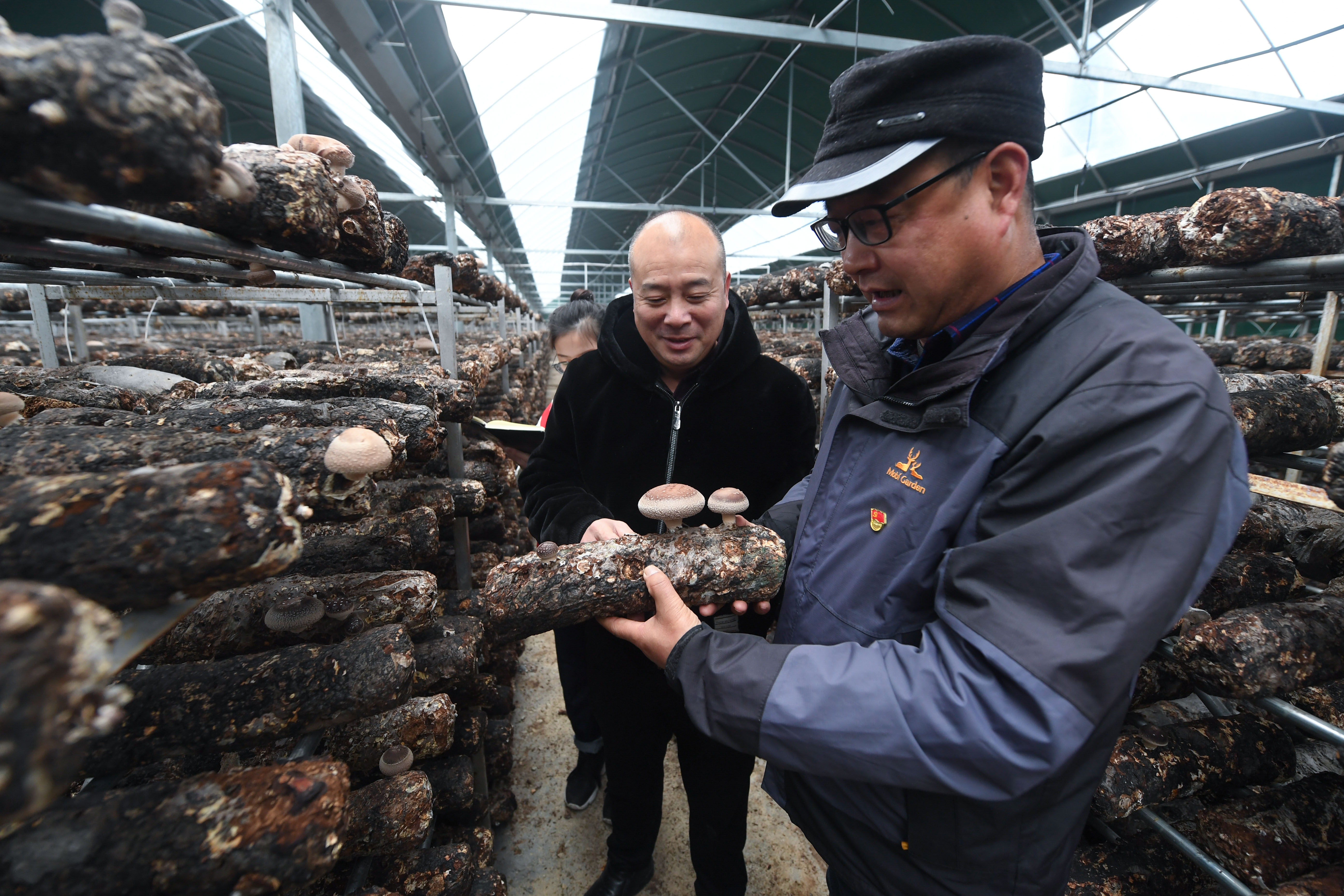 新华社照片,杭州,2022年2月16日 “三服务”到田头 护航春耕备耕 2月16日,杭州市临安区湍口镇“三服务”小分队的农技专家周昌豪(右)在龙口食用菌专业合作社与负责人交流,了解菌菇长势并进行技术指导。 连日来,浙江省杭州市临安区湍口镇启动春耕备耕“三服务”活动,组织农技专家、党员志愿者深入田间地头,对种养殖户进行点对点帮扶,着力解决种养殖户在春季生产过程中遇到的实际困难,指导做好农产品生产、加工销售、防灾减灾等工作。 新华社记者 徐昱 摄