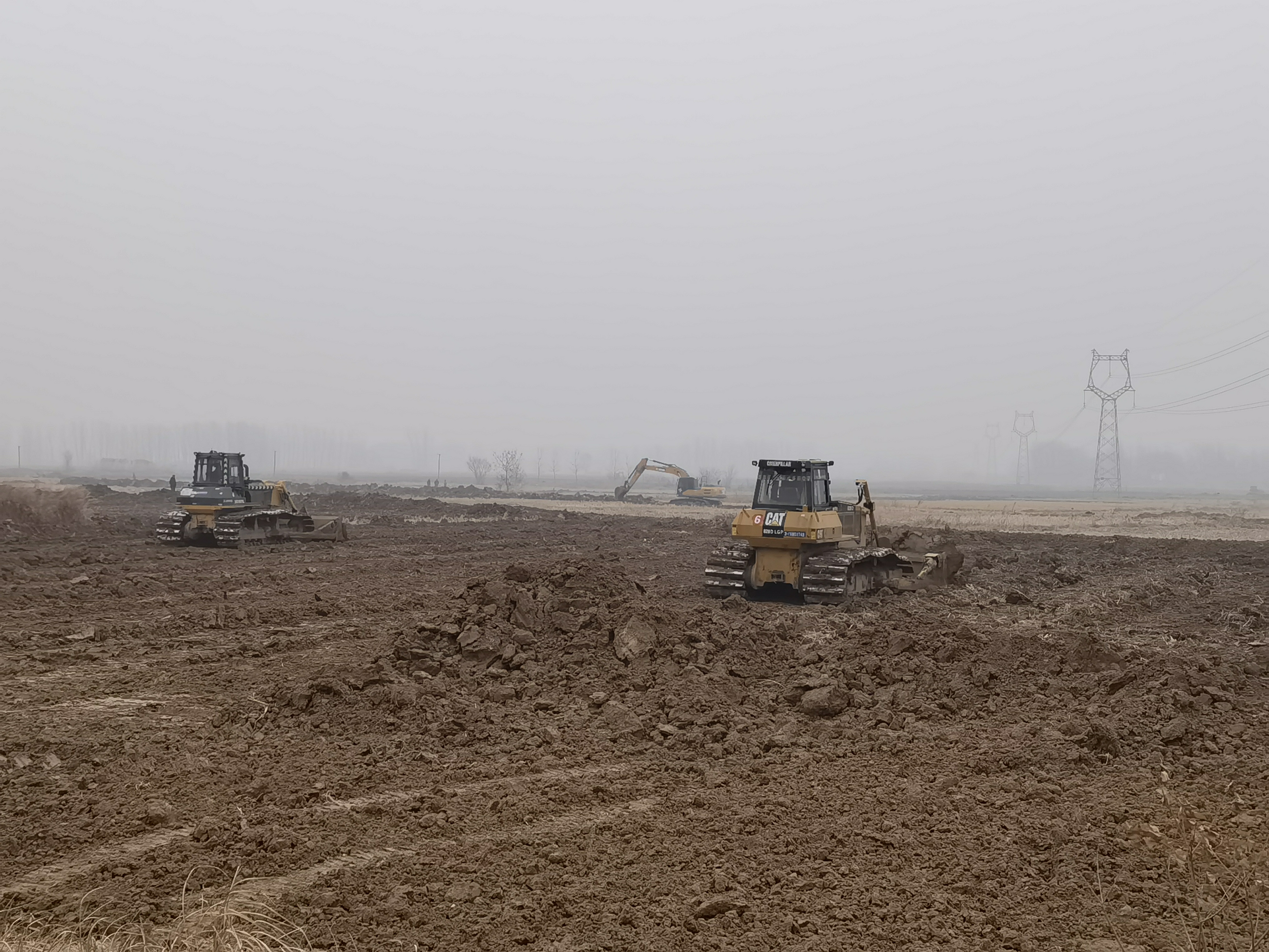 2021年12月初,淮南市谢家集区杨公镇前瓦村,挖机正在平整土地。新华社记者 水金辰摄