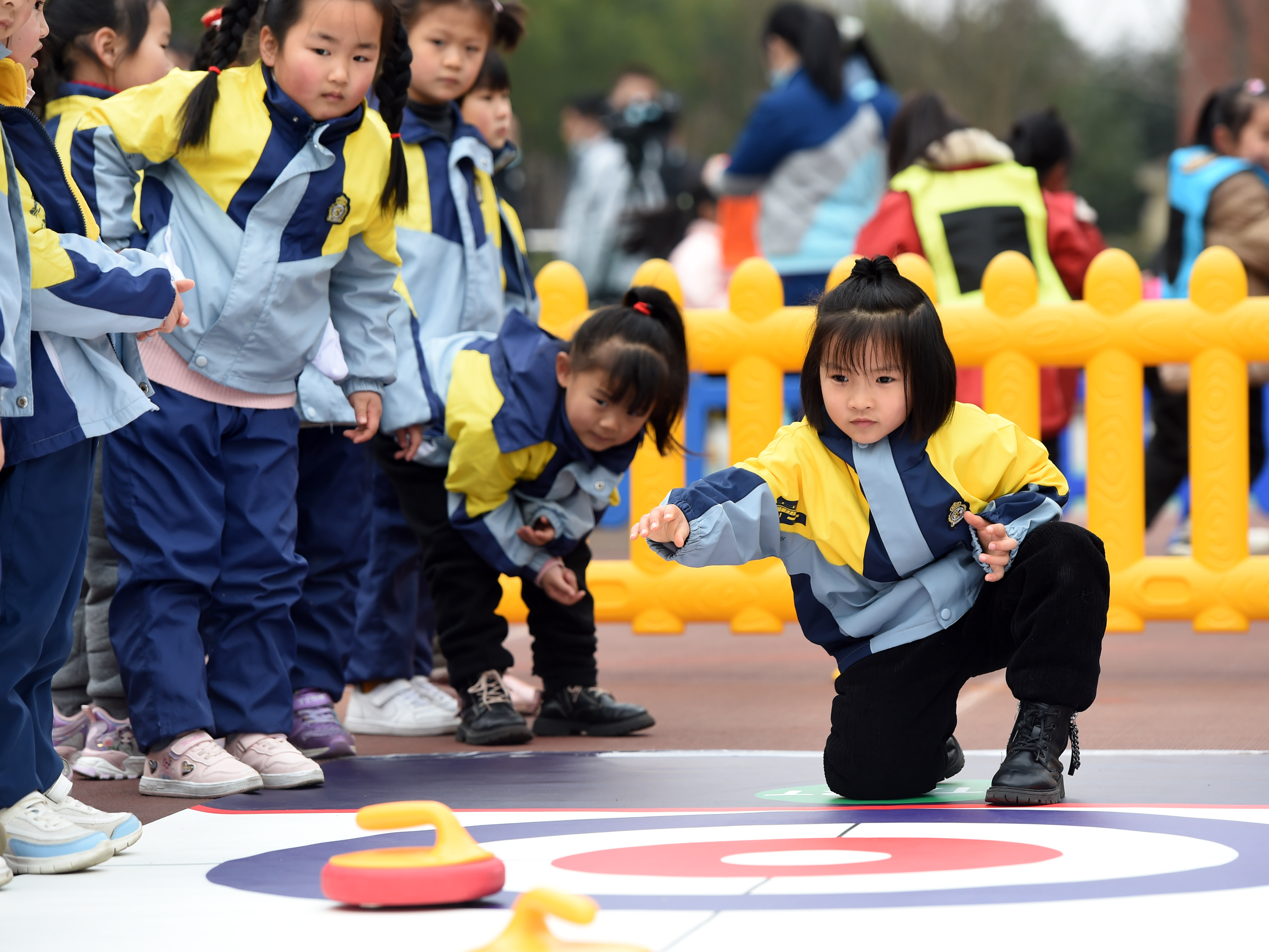 新华社照片,合肥,2022年2月16日 快乐“冬奥游戏”迎开学 2月16日,合肥市泰山路幼儿园的小朋友在开学典礼上体验“旱地冰壶”游戏。 当日是合肥市中小学幼儿园春季开学第一天,合肥市泰山路幼儿园在开学典礼上设置了“旱地冰壶”“旱地冰球”“滑雪橇”等游戏环节,让孩子们了解冬奥会的相关知识,感受运动的乐趣,迎接新学期的到来。 新华社记者 周牧 摄