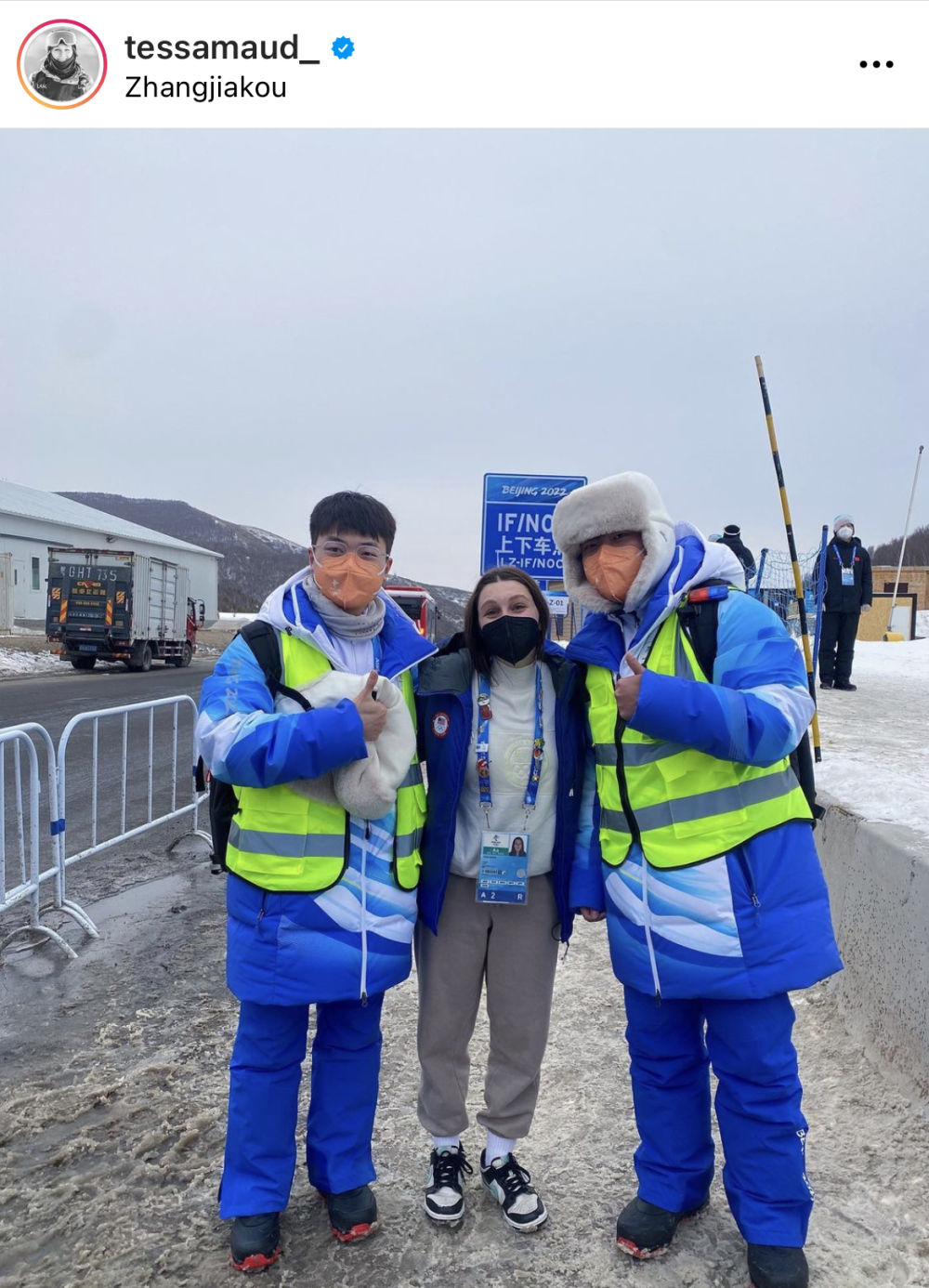 莫德在社交媒体展示与北京冬奥会志愿者的合影。(网页截图)