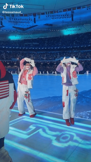 其中一条视频里,莫德记录了自己和队友在中国国家体育场“鸟巢”参加北京冬奥会开幕式的情形。“你好!”莫德在随美国队入场时用中文向热情的中国志愿者们打招呼。“欢迎来到中国!”边跳舞边挥手的中国志愿者用英文回应说。