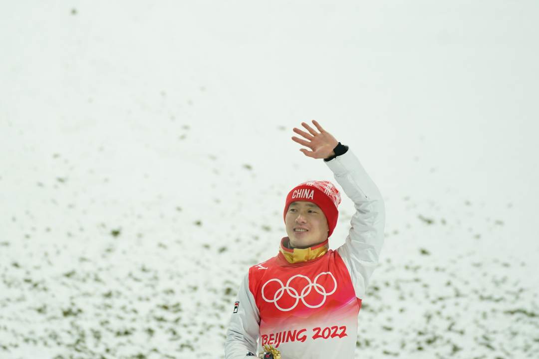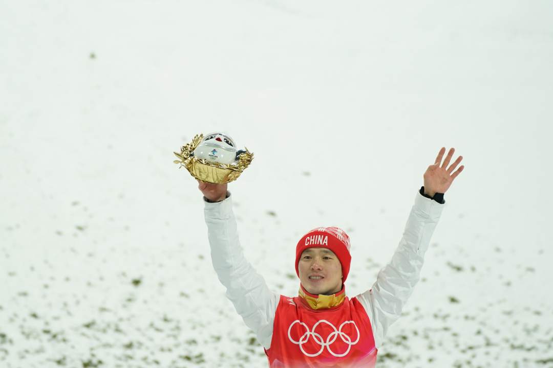 在刚刚结束的自由式滑雪男子空中技巧决赛中,中国队选手齐广璞以129.00的高分为中国体育代表团再添一枚金牌。在纪念品颁发仪式上,齐广璞收获了他在本届冬奥会上的第二个“金墩墩”。