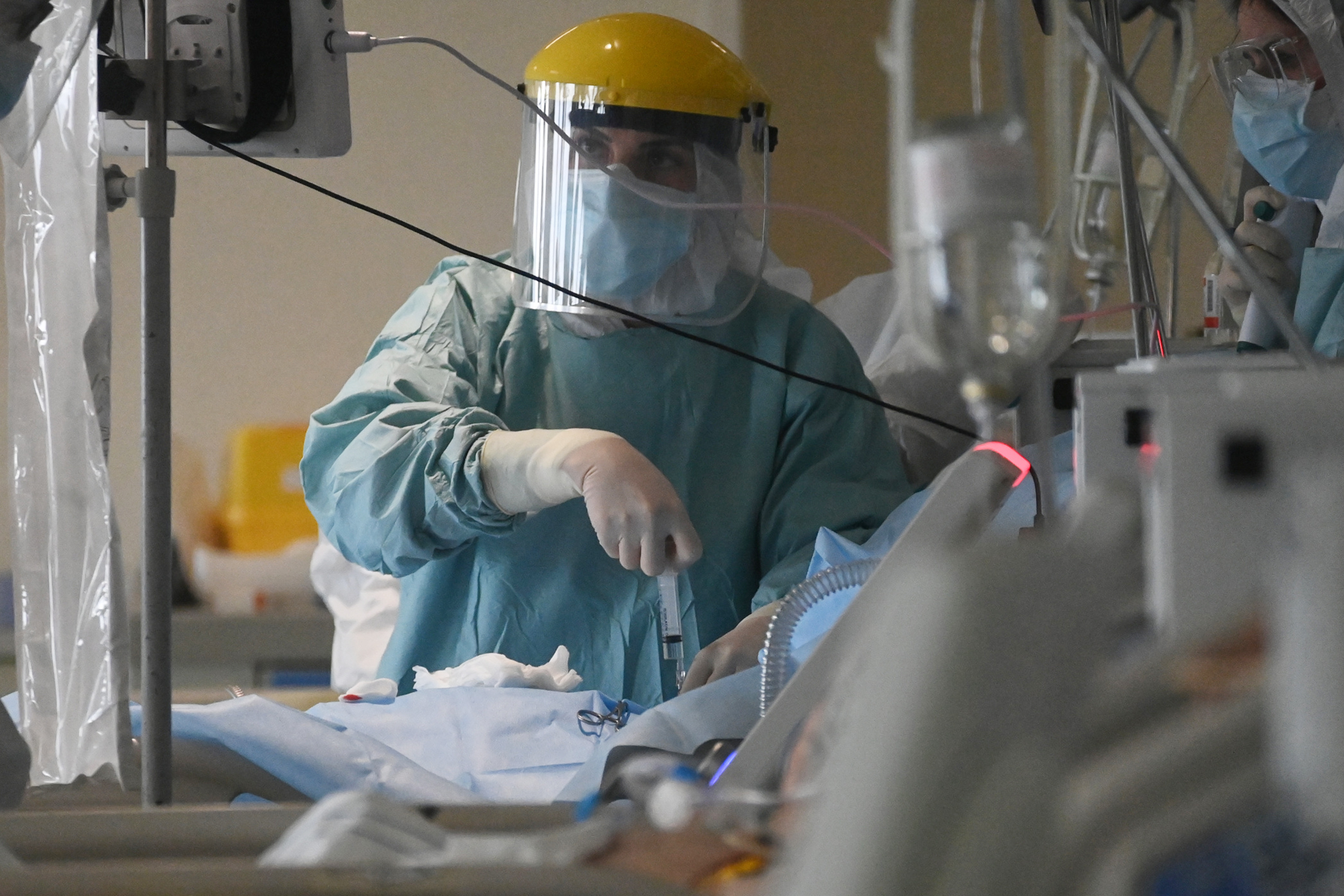 1月25日,医务人员在意大利博洛尼亚一家医院的新冠重症监护室工作。新华社发(贾尼·斯基基摄)