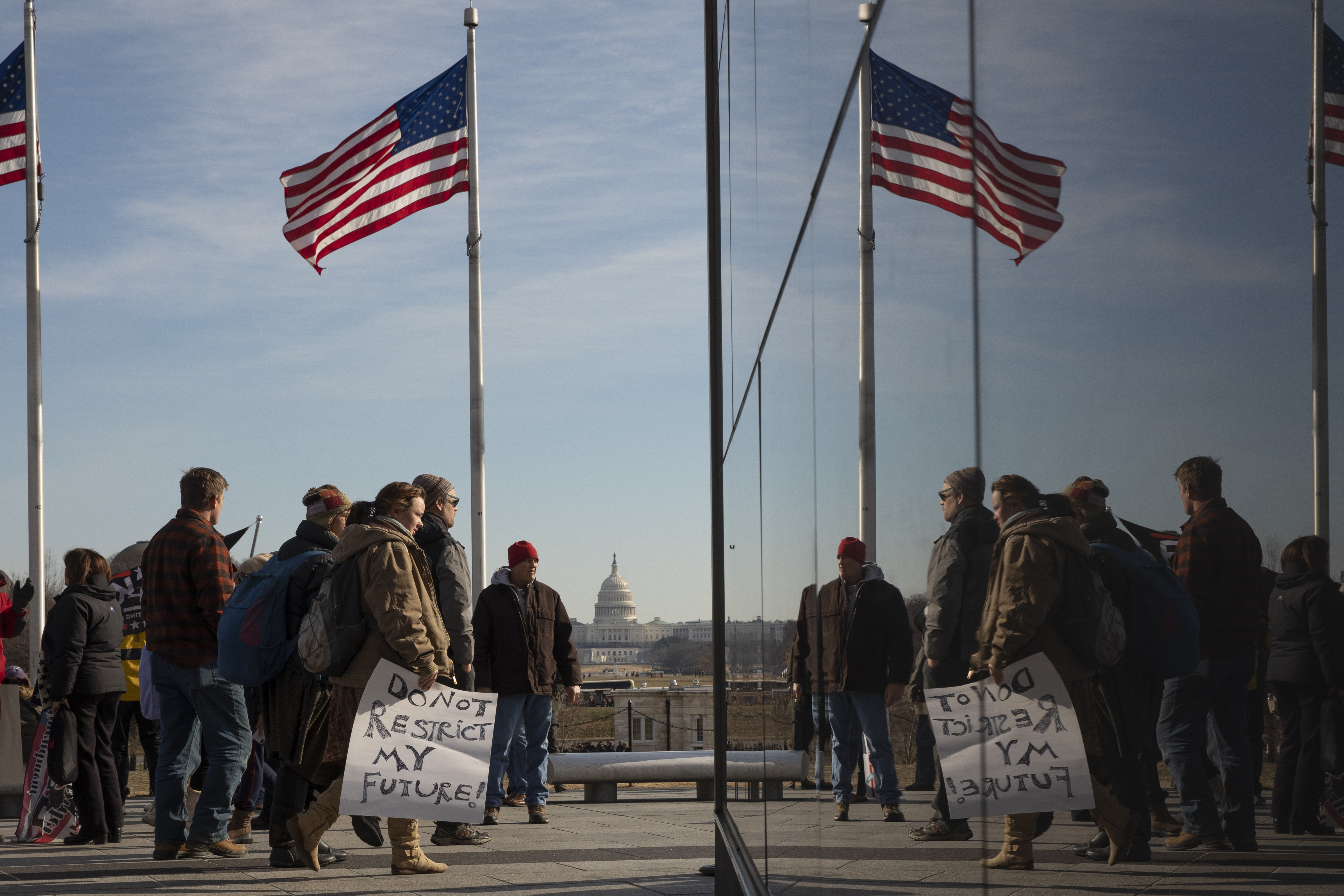 1月23日,人们在美国首都华盛顿参加游行活动,反对新冠疫苗强制令等多种防疫措施。新华社发(阿伦摄)