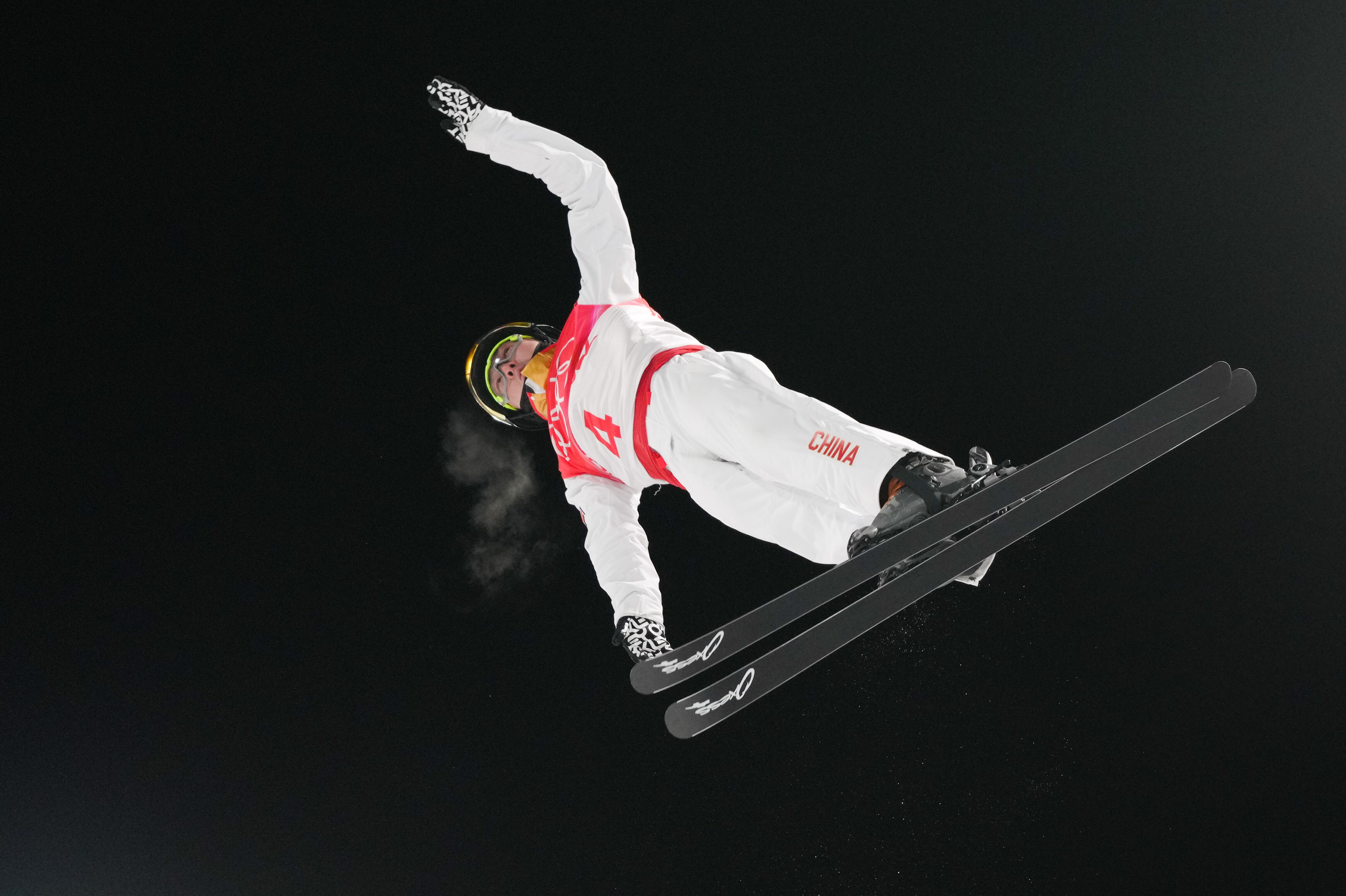 2月16日,中国选手齐广璞在北京冬奥会自由式滑雪男子空中技巧决赛中。新华社记者薛玉斌摄