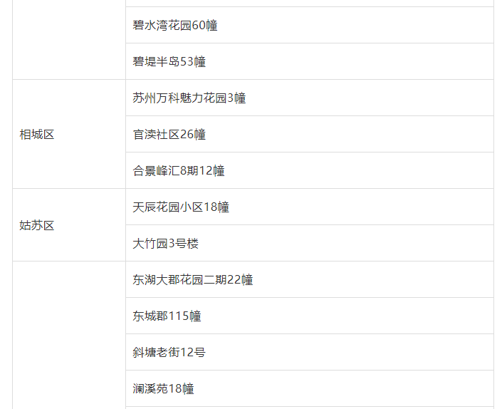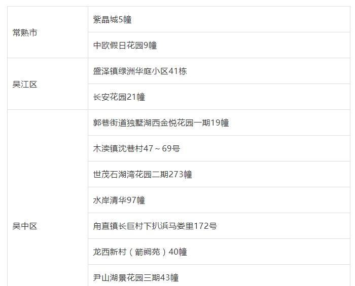 吴中区:尹山湖景花园三期43幢、碧水湾花园60幢、碧堤半岛53幢