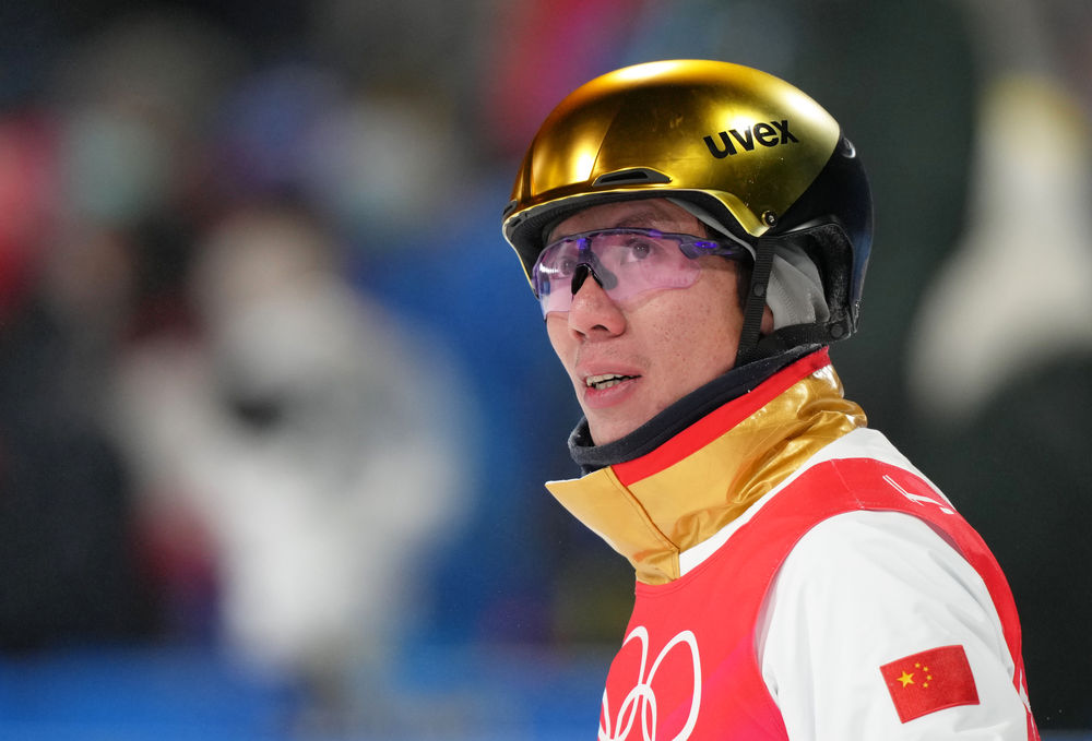 此时,在北京冬奥会自由式滑雪男子空中技巧“大决赛”(决赛第二轮)中,他的队友齐广璞已经跳出129.00的高分,暂列第一,随后出场的选手也没超过他。