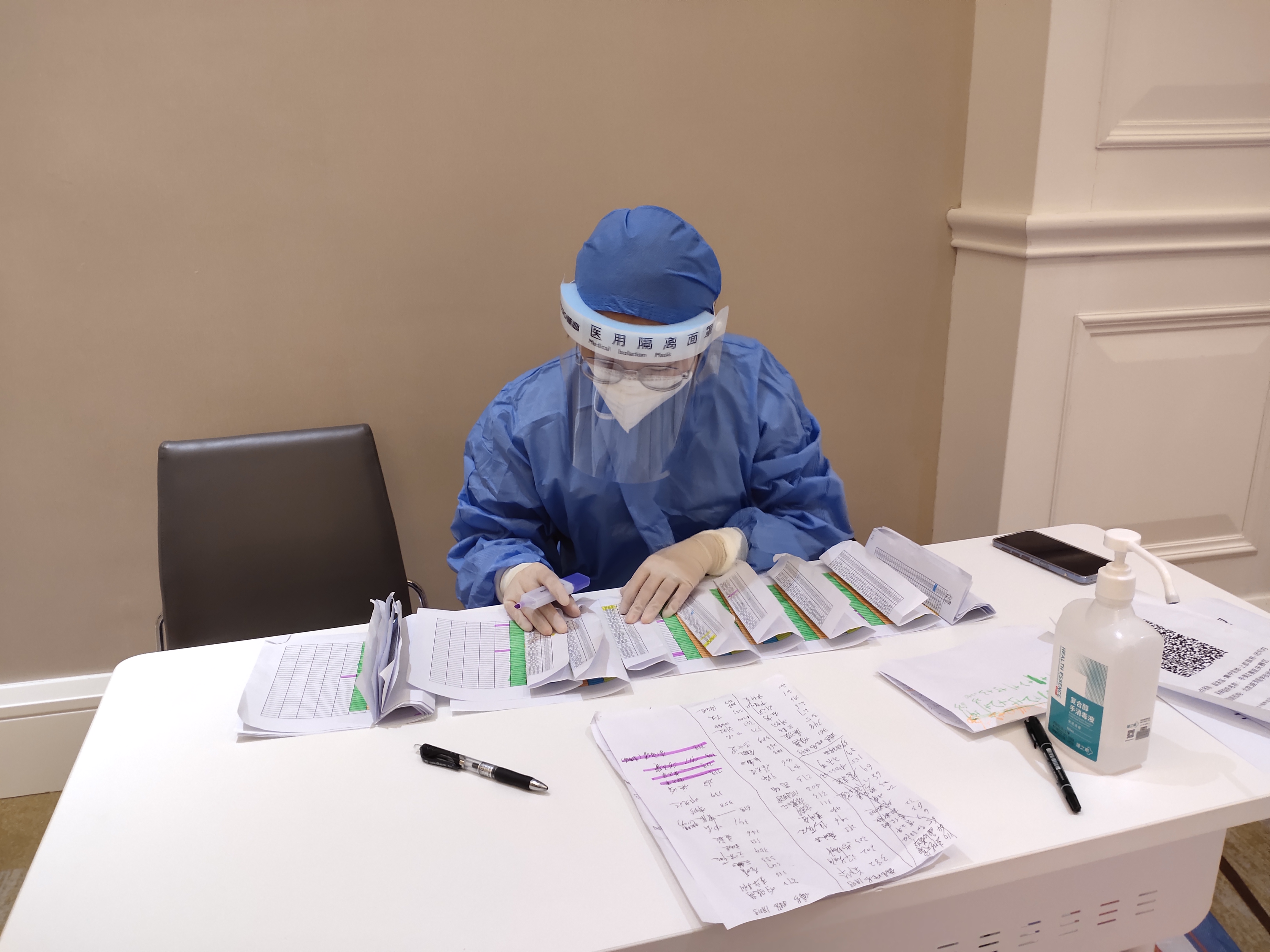刘畅在隔离酒店统计人员防疫情况(图片由受访者提供)