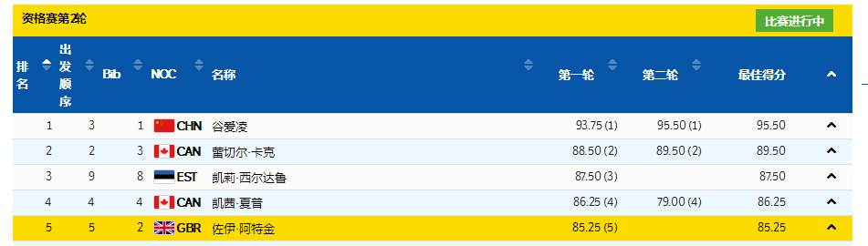 棒!U型场地技巧资格赛,谷爱凌第二轮95.50分