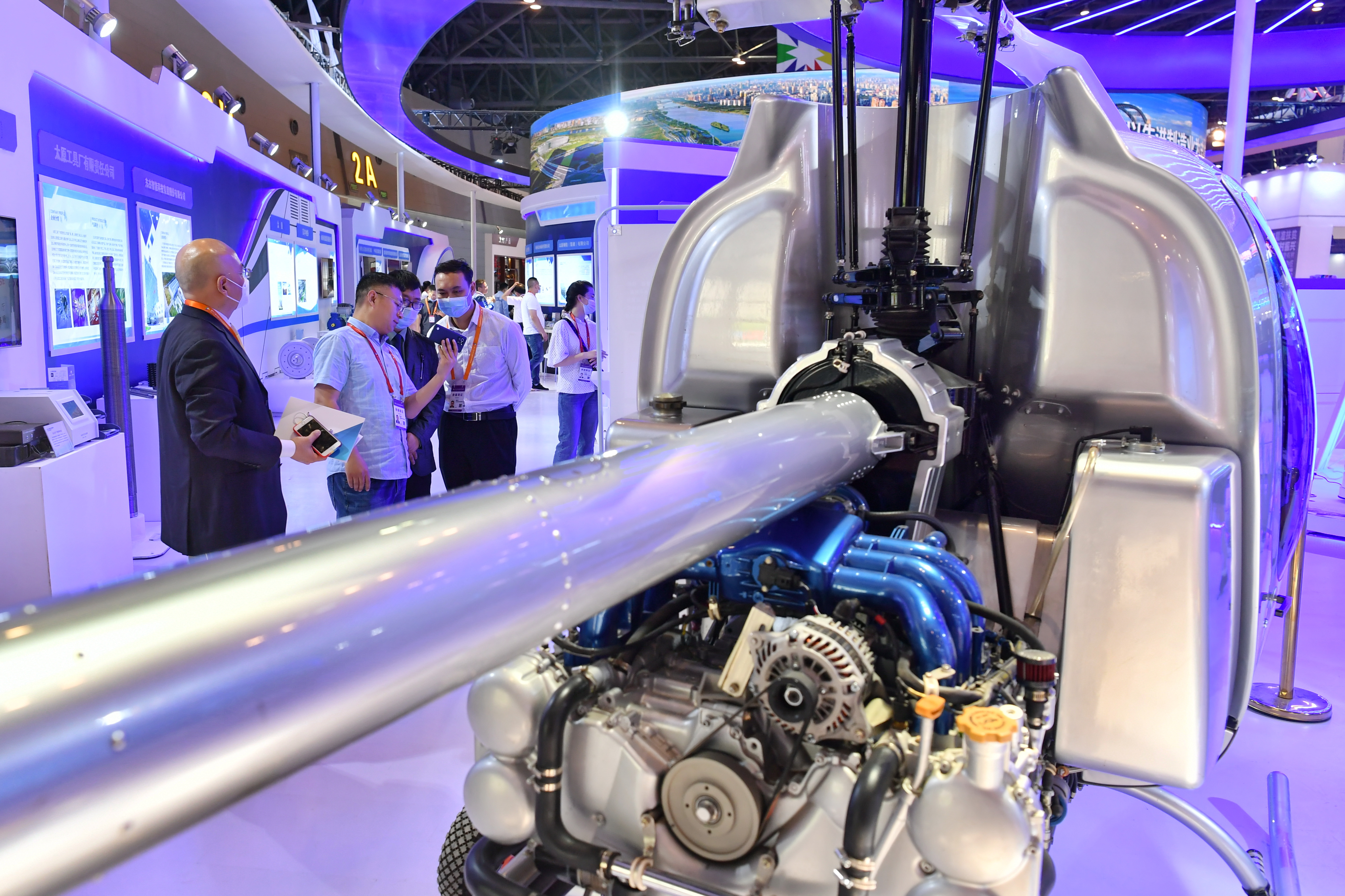 2021年5月21日,参展商在第十二届中国中部投资贸易博览会上为参观者介绍山西直升机研发制造基地的产品。新华社记者曹阳摄