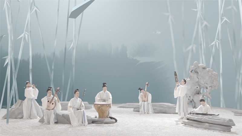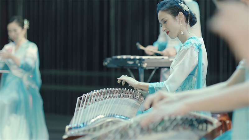 《浙里有乐》民乐电影由浙江演艺集团浙江歌舞剧院民乐团演出。该作品以浙江传统民乐与江南丝竹雅乐为基础,注重“诗”与“乐”的融合,加入钱王射潮、竹林七贤等民间传说故事,演绎了一台极具浙江地域特色的民族管弦音乐会。其中,鼓乐《钱王射潮》以多人击鼓、鼓乐齐鸣展现钱江潮涌与当代浙江儿女勇立潮头的时代风貌;乐曲《竹林七贤》中,古琴与二胡、琵琶、笛箫等乐器的碰撞与融合彰显出东方文化的风采;吹打乐《海唤天》中,唢呐与民族乐队将民族风韵、现代技巧和时代气派有机结合,为粗犷奔放的唢呐开辟了细腻婉约的新风格;而古筝《清河水歌》则表现了人在舞、水在歌的江南婉约美丽画卷。整部作品让人感受到浙江山水的诗情和画意,感受中国礼乐的至善与大美。