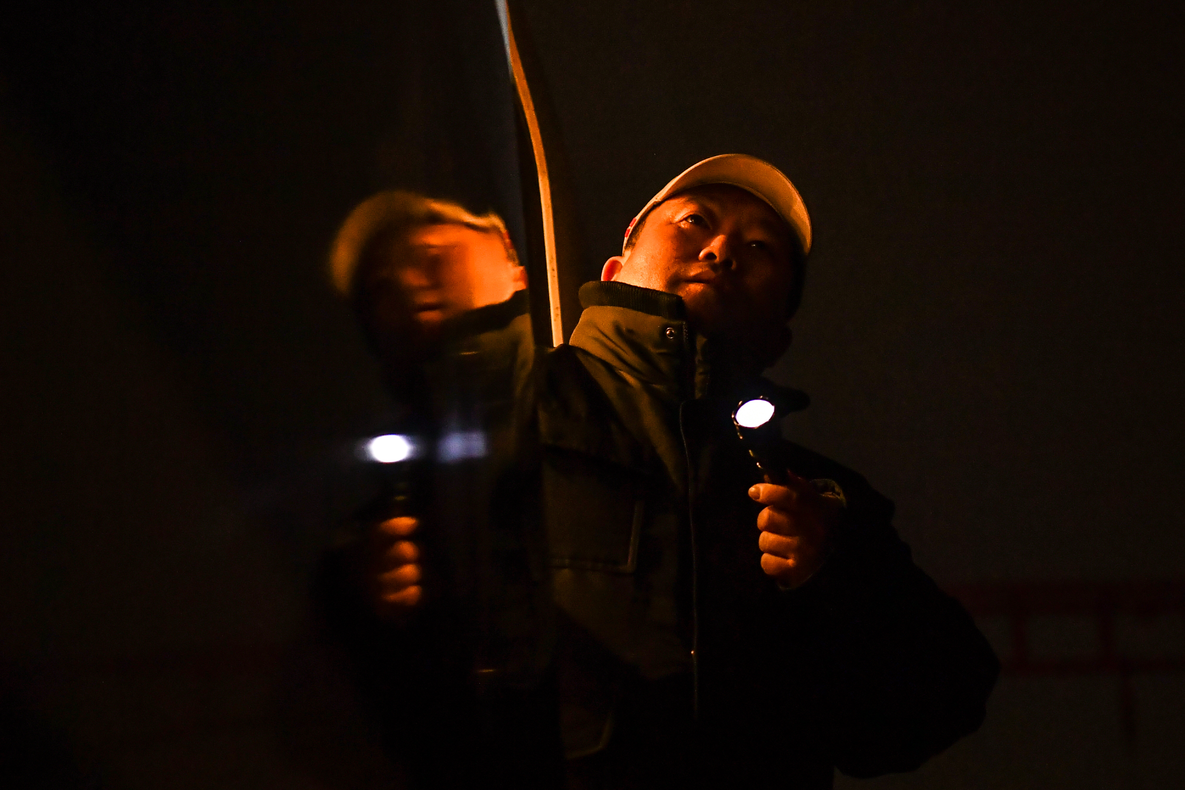 新华社照片,太原,2022年2月17日 列车“打温人” 2月16日,工长武国华在检查动车组受电弓状态。 为防止夜间动车组列车内部的复杂管路被冻坏,中国铁路太原局集团有限公司太原车辆段组建的“打温队”,每天为不同车型的70余列动车组提供“打温服务”。升弓供电、巡检车厢、拍照记录……“打温人”穿梭在一节节车厢之间,保障车内设备处于良好状态,守护旅客出行安全。 新华社记者 曹阳 摄