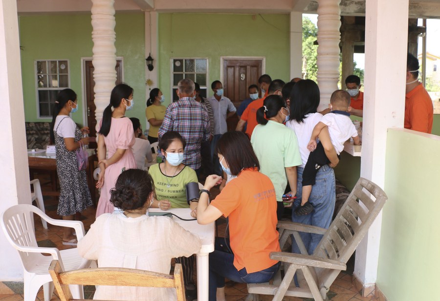 2月6日,中国医疗队在圭亚那西南边境城市莱瑟姆为当地华侨华人义诊。(新华社发,医疗队供图)