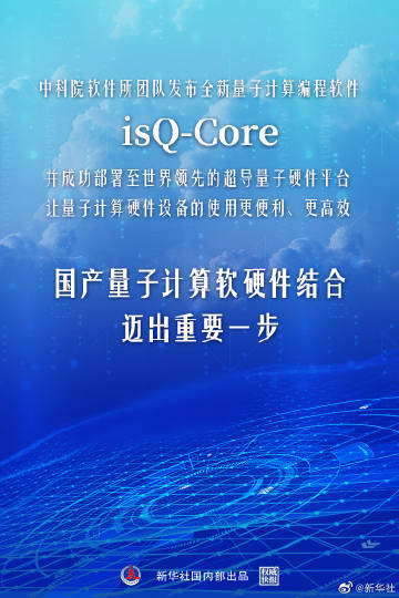 #全新量子计算软件发布# 【权威快报|#国产量子计算软硬件结合迈出重要一步#】量子计算软件是连接用户与量子计算硬件设备的桥梁。中科院软件所团队日前发布全新量子计算编程软件——isQ-Core,并成功部署至世界领先的超导量子硬件平台,标志着国产量子计算软硬件结合迈出重要一步。该软件具有简洁、易用、高效、扩展性强、可靠性高等特点,将为用户便利使用量子计算硬件设备提供有力支持。(记者张泉,海报设计乔昕)