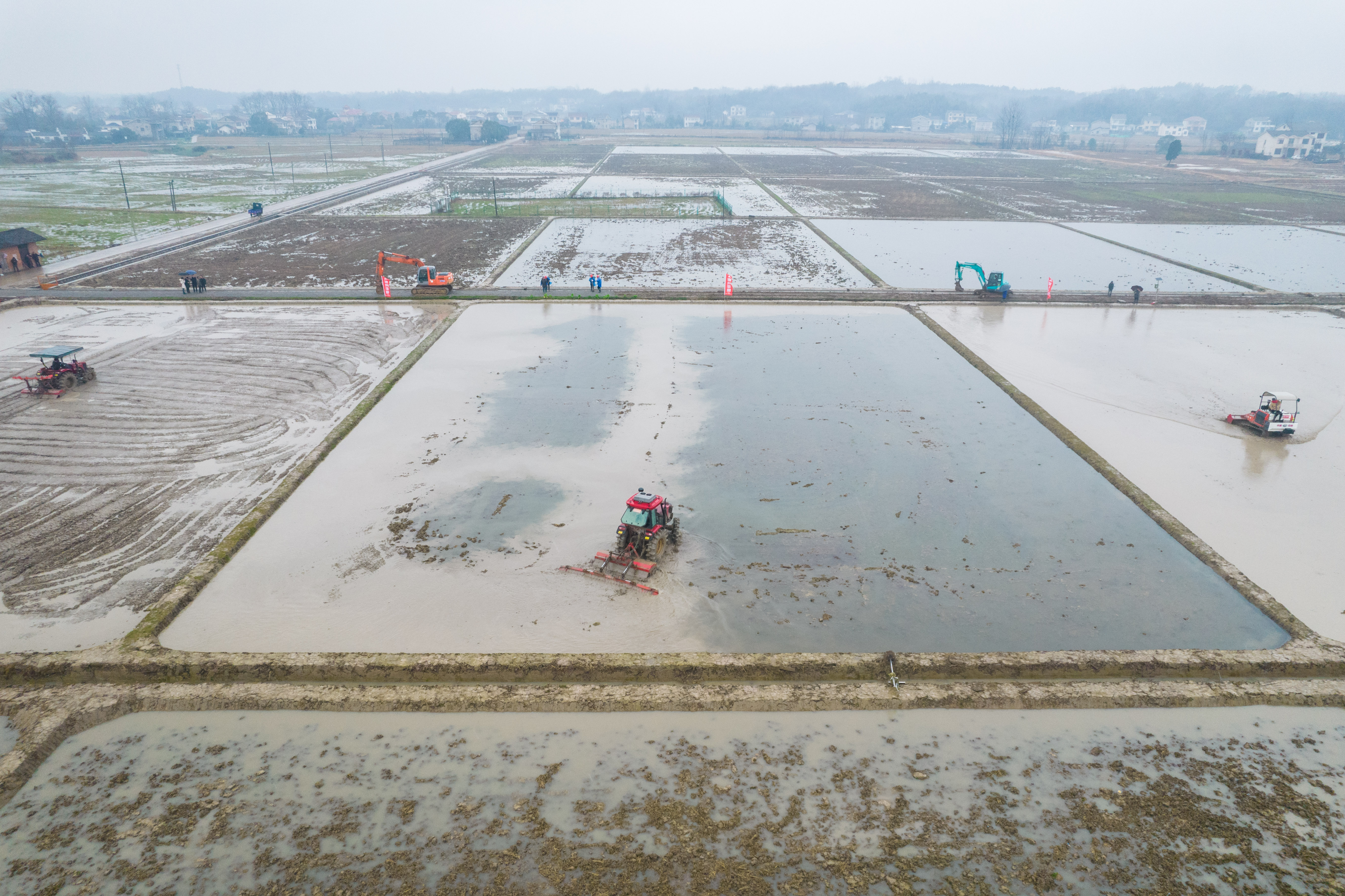 新华社照片,桃源(湖南),2022年2月17日 湖南桃源:高标准农田建设备春耕 2月17日,在桃源县浔阳街道大平村,工作人员驾驶农机平整土地(无人机照片)。 眼下,湖南省常德市桃源县利用备耕时节加紧推进高标准农田建设,提升配套设施水平,改善农田灌溉及耕作条件,为当地农业机械化、规模化和标准化发展打好基础,助推农民增产增收。 桃源县是湖南省产粮大县,计划建设高标准农田12.22万亩,项目自2021年10月下旬开工至今,已完成项目任务的90%以上。 新华社记者 陈思汗 摄