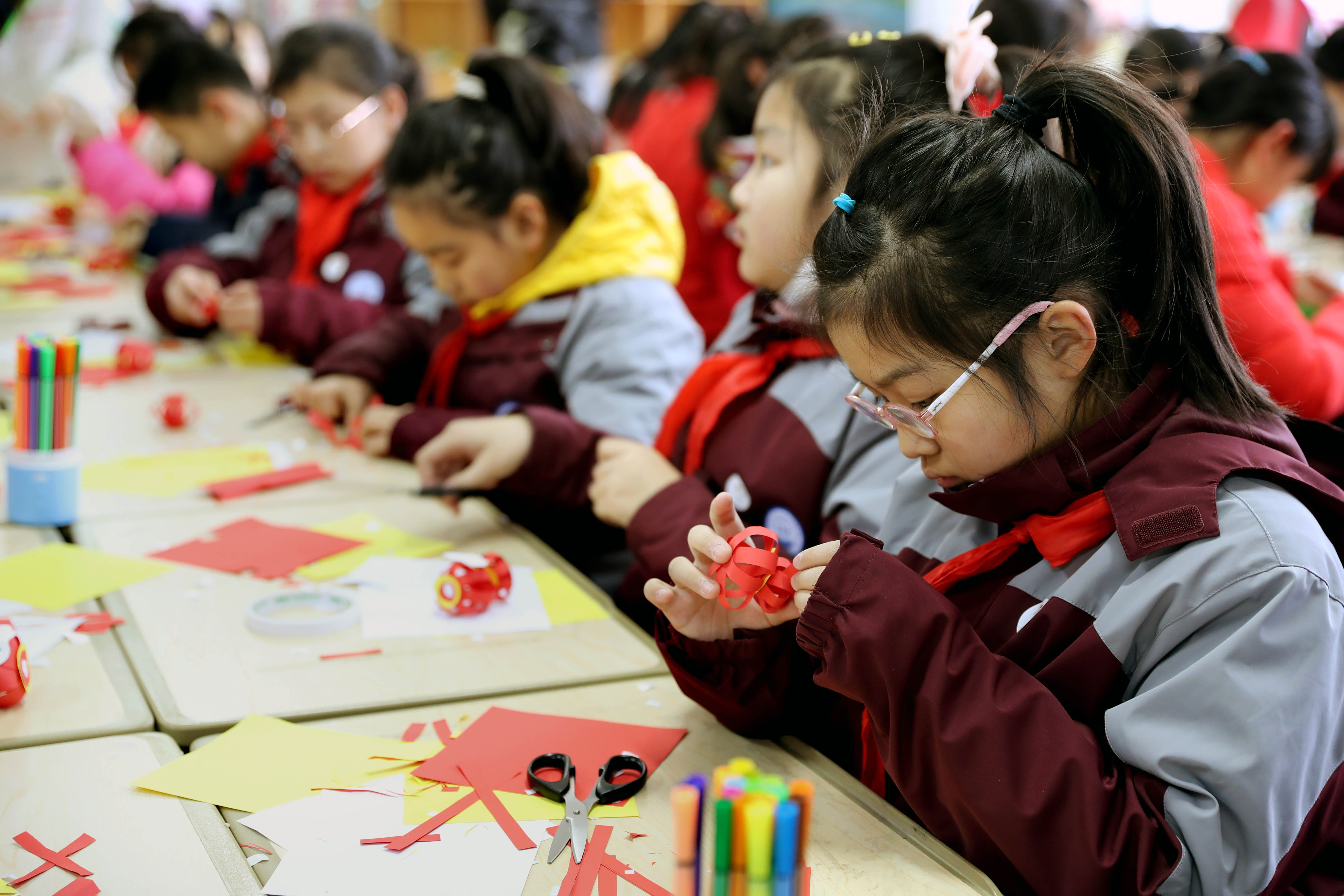 新华社照片,上海,2022年2月17日 开学遇上冬奥 我们一起加油! 2月17日,学生们在制作冬奥吉祥物手工作品。 当日,上海中小学生迎来新学期。与以往不同,今年开学第一天充满冬奥元素。在上海对外经贸大学附属松江实验学校,学生们举着自制的带有冬奥元素的班级牌参加开学典礼,聆听冰壶知识讲座,动手制作冬奥吉祥物……既为冬奥健儿喝彩,也为新学期的自己加油! 新华社记者 刘颖 摄