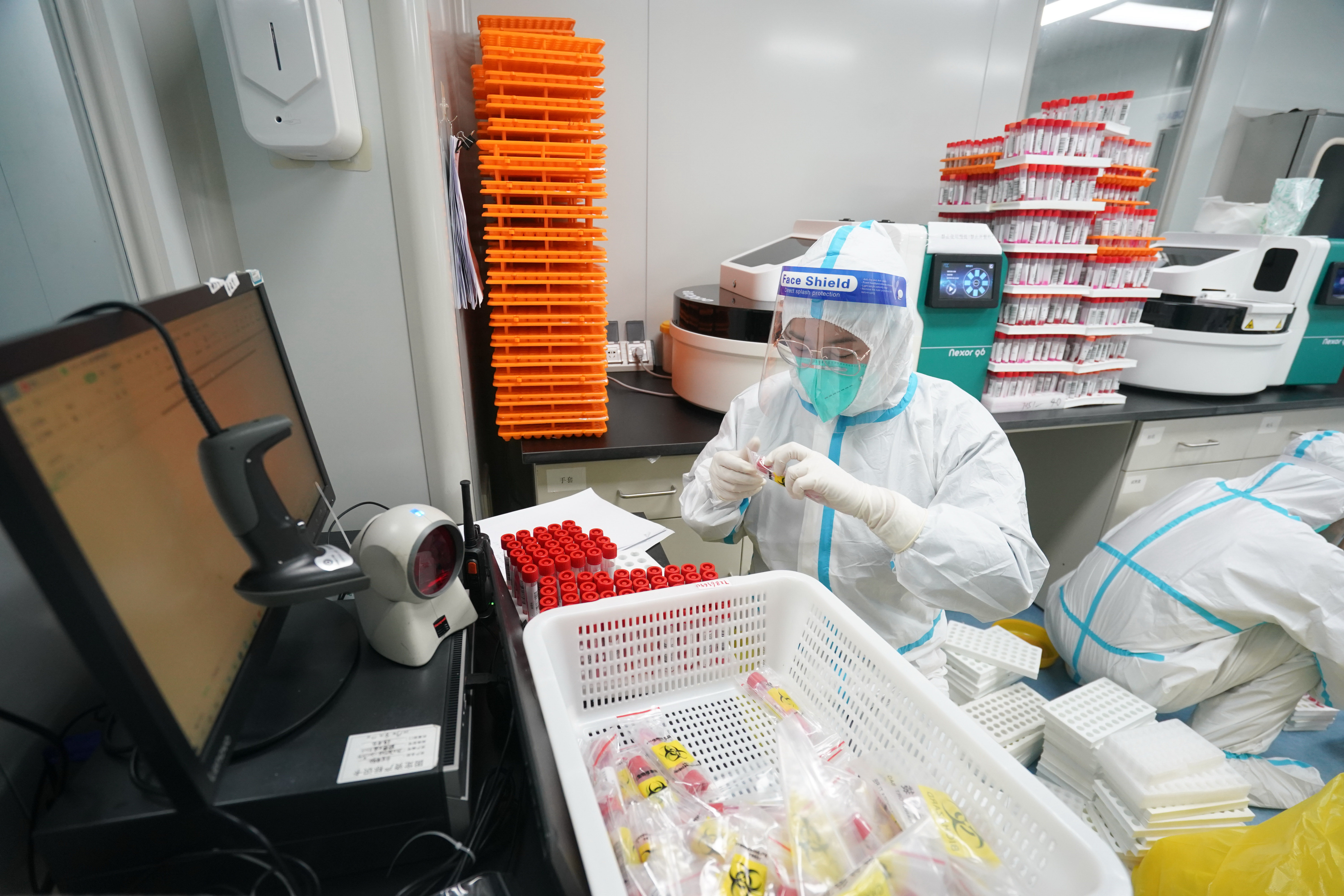 新华社照片,苏州(江苏),2022年2月17日 苏州企业战疫情抓生产 2月17日,员工在爱普益(苏州)医学检验实验室有限公司样本制备区对样本进行前期处理。 在做好疫情防控的前提下,苏州各企业抓生产、保订单,有序开展各项工作。 新华社记者 季春鹏 摄