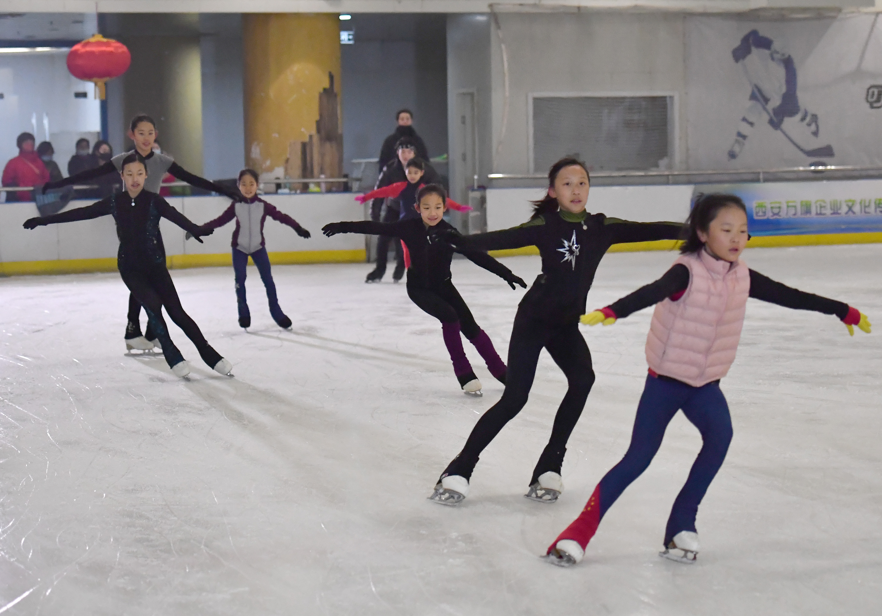 新华社照片,西安,2022年2月17日 陕西:冰雪经济蓬勃发展 2月11日,在陕西西安市奥佳冰上运动俱乐部内,队员们在练习花样滑冰。 近年来,随着陕西省冰雪运动场馆建设水平逐步提高,越来越多群众参与到冬季运动之中,激发门票、培训、服务业、器材装备等冰雪消费快速增长。据不完全统计,目前陕西省累计参与冰雪运动人数达到540万人,带动体育消费50多亿元;其中2020至2021年,陕西省滑雪场带动体育消费增长达10多亿元。 新华社记者 邵瑞 摄