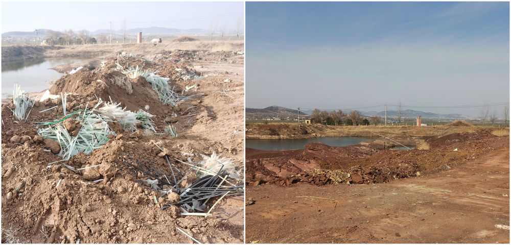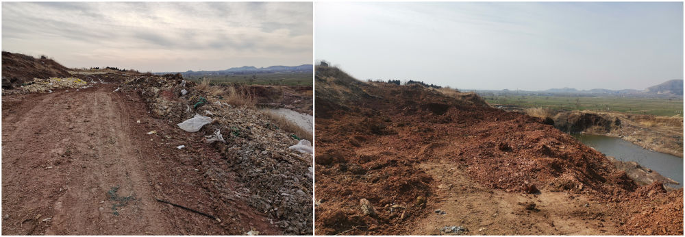 问题线索反映者拍摄的图片中显示,山上堆积了不少垃圾,有的掩埋在坑里,有的裸露在外。该反映者表示,垃圾的不远处是农田和水塘,如不及时处理,雨季来临时,垃圾有可能会被雨水冲到别处,造成农田和水塘污染,希望相关部门能够尽快处理。