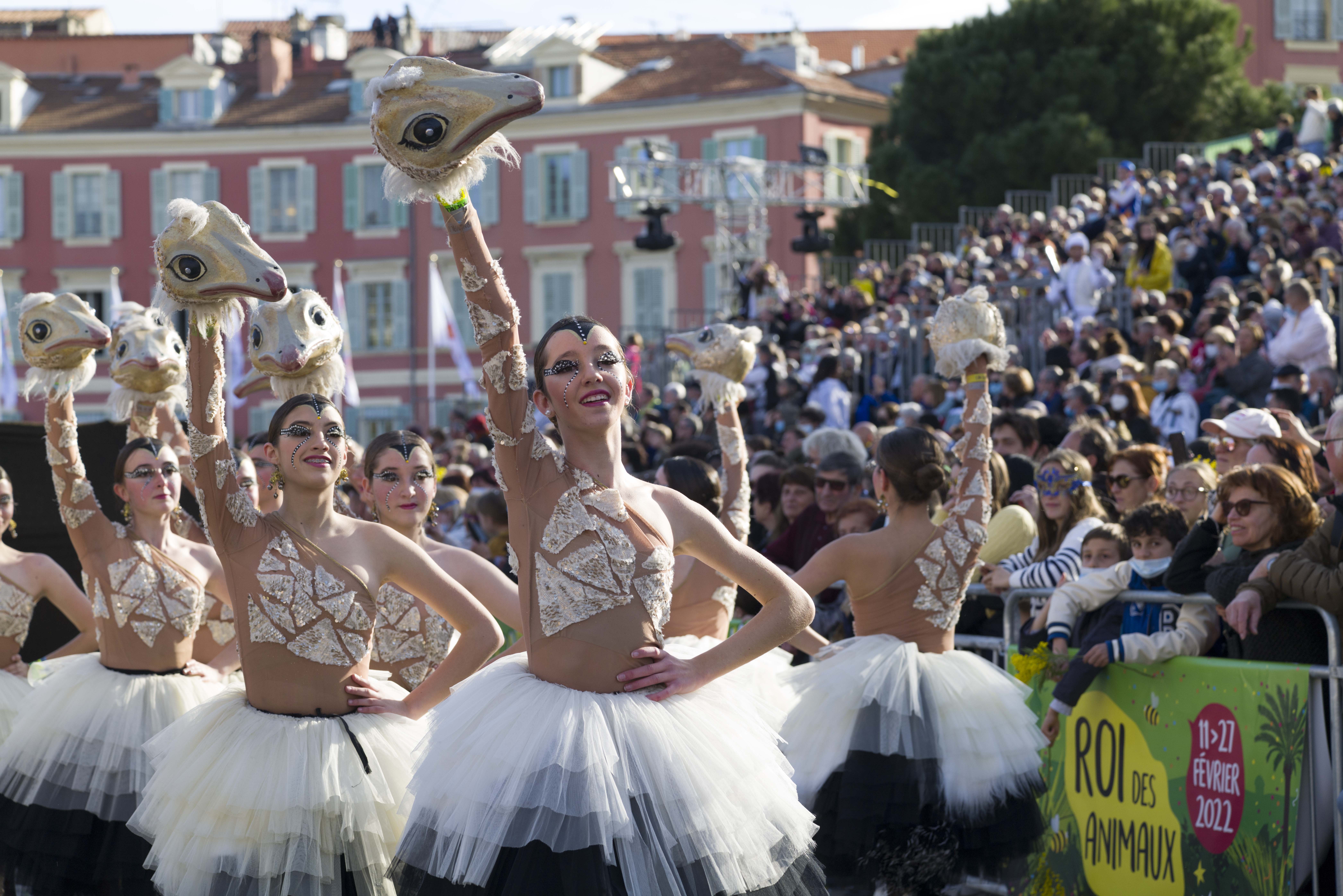 新华社照片,尼斯(法国),2022年2月17日 (国际)(6)尼斯狂欢节继续举行 2月16日,演员在法国尼斯狂欢节上表演。 第137届尼斯狂欢节于2月11日至27日举行。 新华社发(塞尔日·阿乌齐摄)