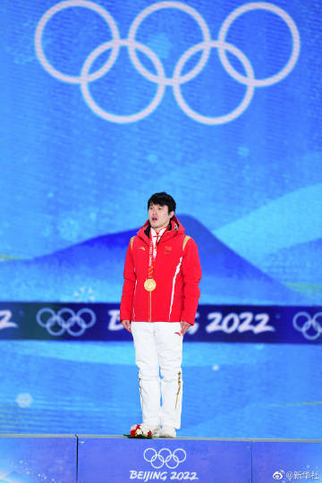 【#齐广璞登上最高领奖台#】2月17日,北京2022年冬奥会自由式滑雪男子空中技巧奖牌颁发仪式在张家口赛区颁奖广场举行。冠军中国选手齐广璞站上最高领奖台,#为齐广璞喝彩#!现场图来了!