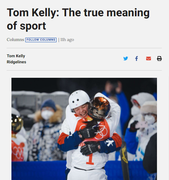 美国体育评论员汤姆·凯利在16日的评论文章《体育的真谛》开篇写道:“情人节(2月14日)这天晚上,在张家口云顶滑雪公园,自由式滑雪女子空中技巧决赛的终点区,有欢笑也有泪水……中美运动员相拥而泣,那一刻,似乎世界的喧嚣混乱都被搁置一旁。”
