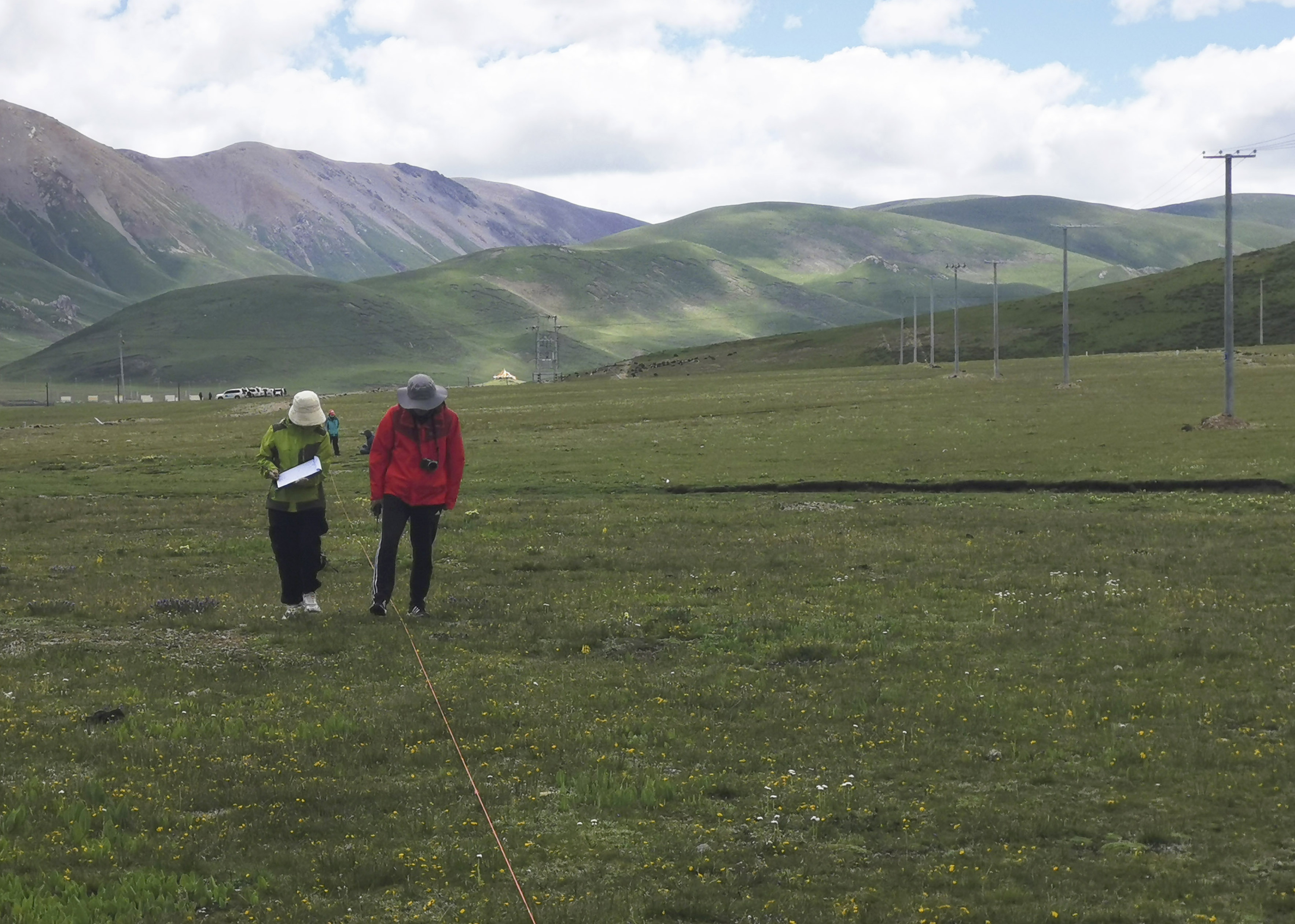 2021年8月2日,第二次青藏高原综合科学考察队“缺氧环境及其健康效应”课题组在青海省海南藏族自治州境内的日月山进行植被调查。第二次青藏高原综合科学考察队供图
