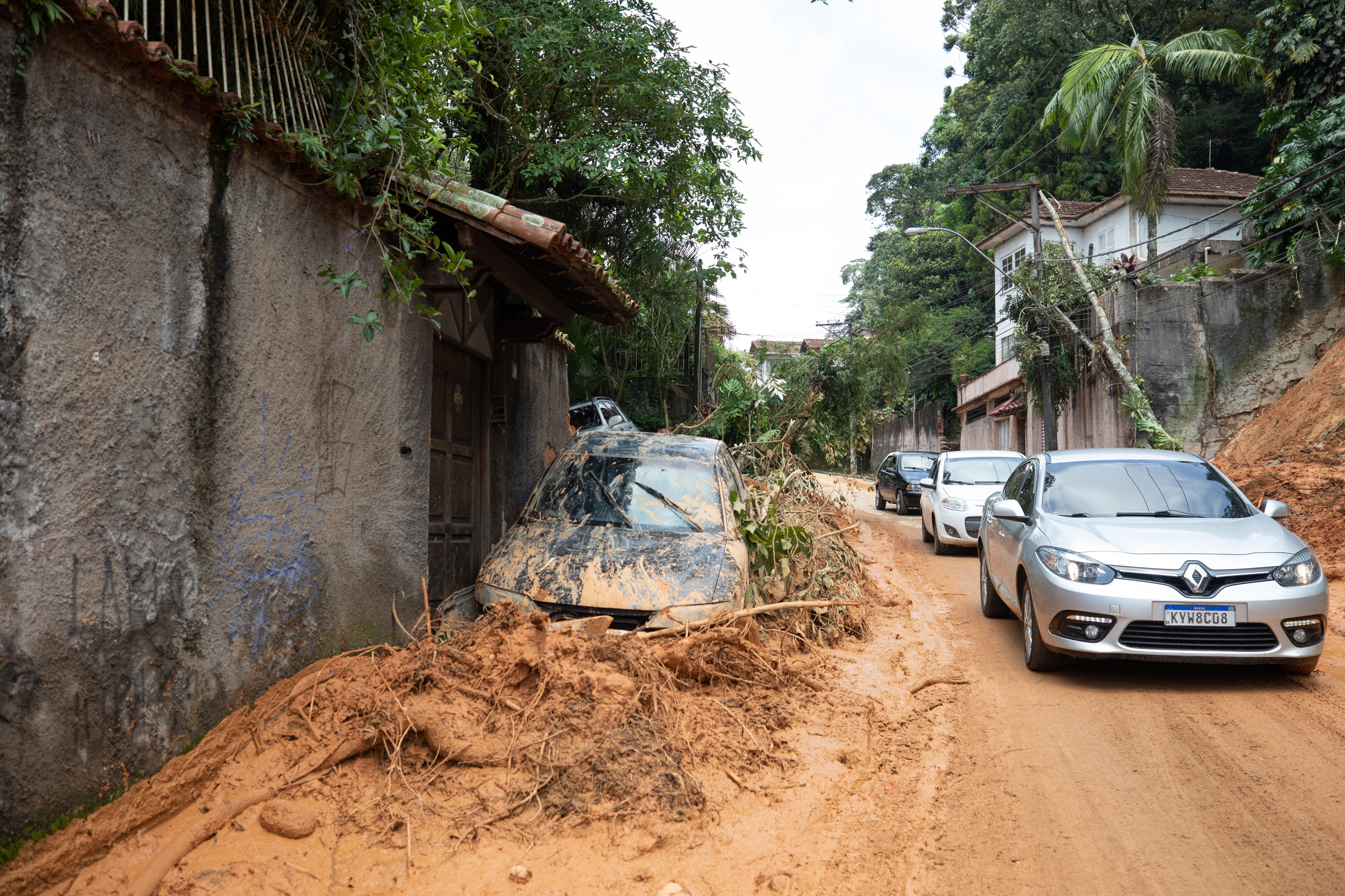 新华社照片,里约热内卢,2022年2月18日 (国际)(2)巴西里约州暴雨灾害致死人数升至117人 2月16日,在巴西里约热内卢州彼得罗波利斯市,一辆汽车陷在淤泥中。 巴西里约热内卢州民防部门17日晚通报,该州彼得罗波利斯市暴雨引发的灾害已造成至少117人死亡,其中包括13名儿童。 新华社记者 王天聪 摄