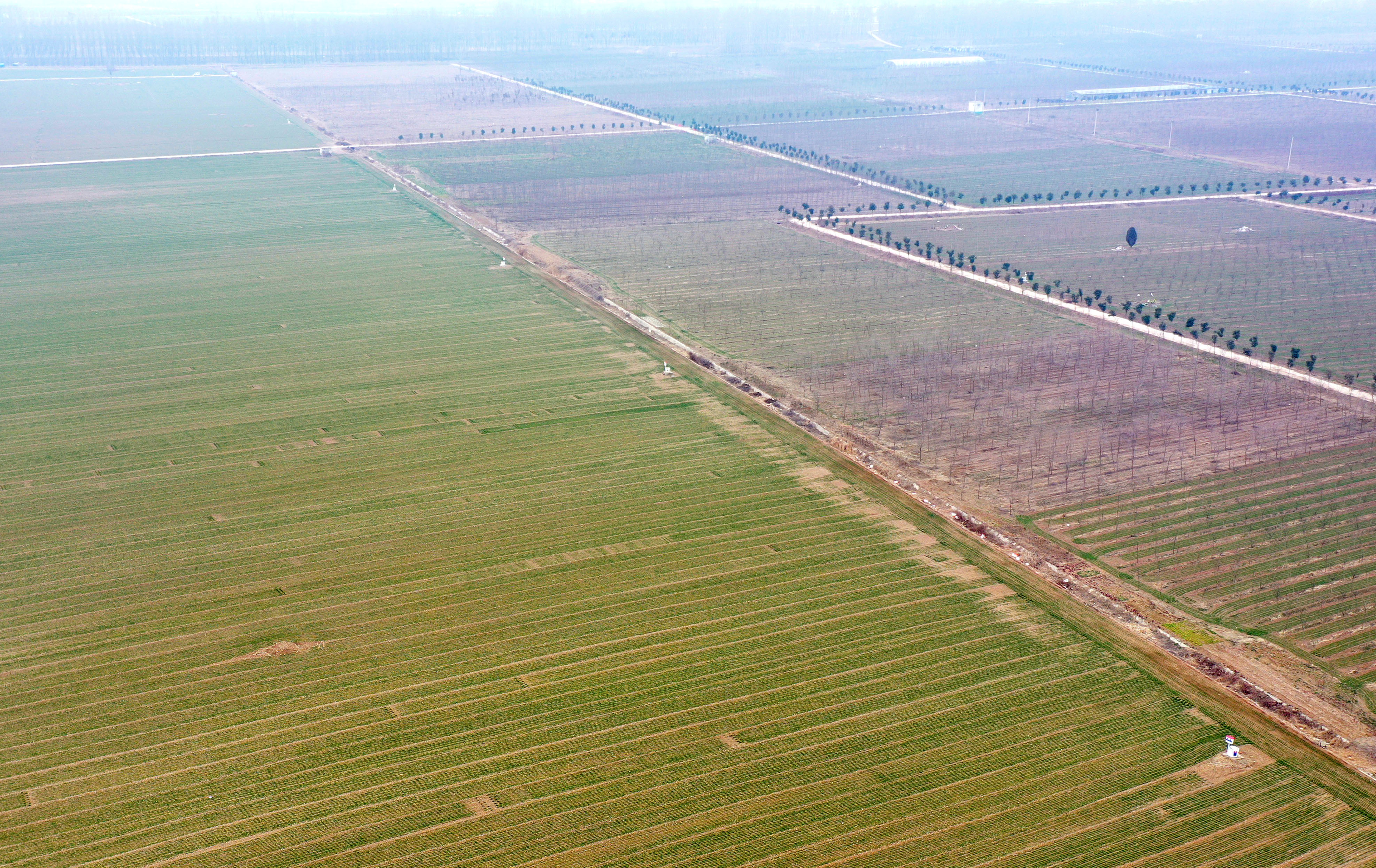 这是2月16日在河南省新乡市封丘县李庄镇竹岗村附近拍摄的农田,灌井遍布其中。(新华社记者郝源 摄)
