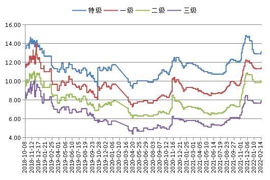 新疆产区各品级灰枣现货价格走势图