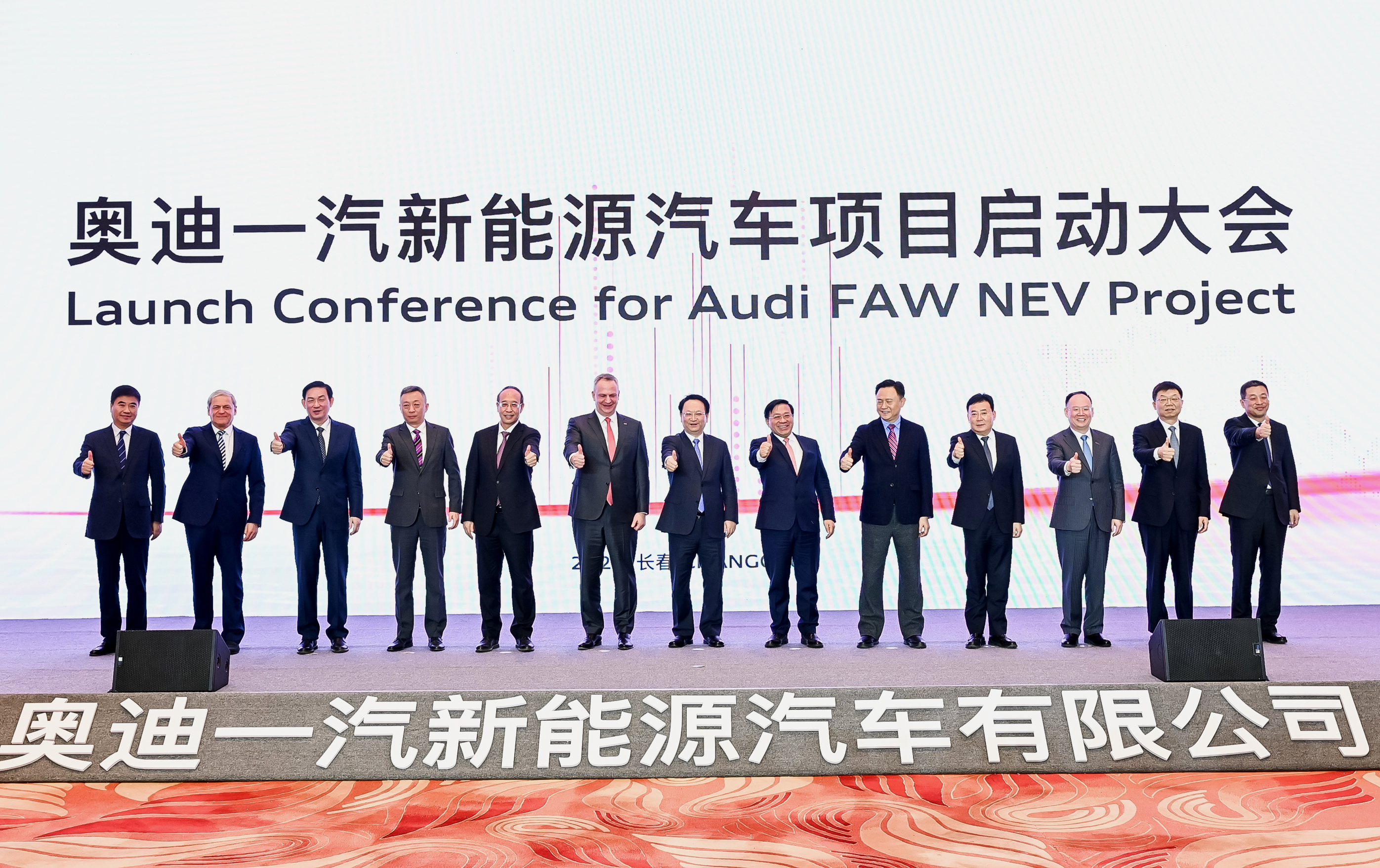 图为奥迪一汽新能源汽车项目启动大会现场。(主办方供图)