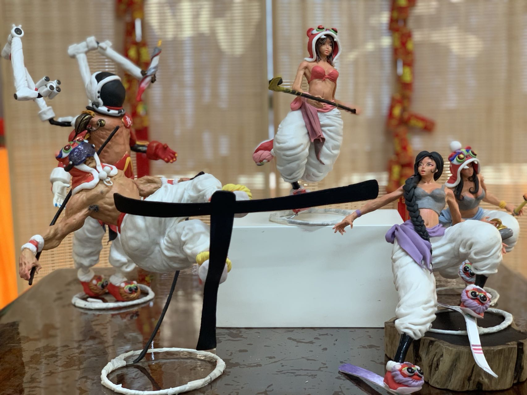 不拘泥于传统的面塑人物形象,张倍源的作品中有动漫的造型特征,继承文化内核,重新拆解和表达文化元素,天马行空创作出“中国风”面塑作品。丝绸之路、戏曲、舞龙舞狮和全运会都曾是他创作的主题。