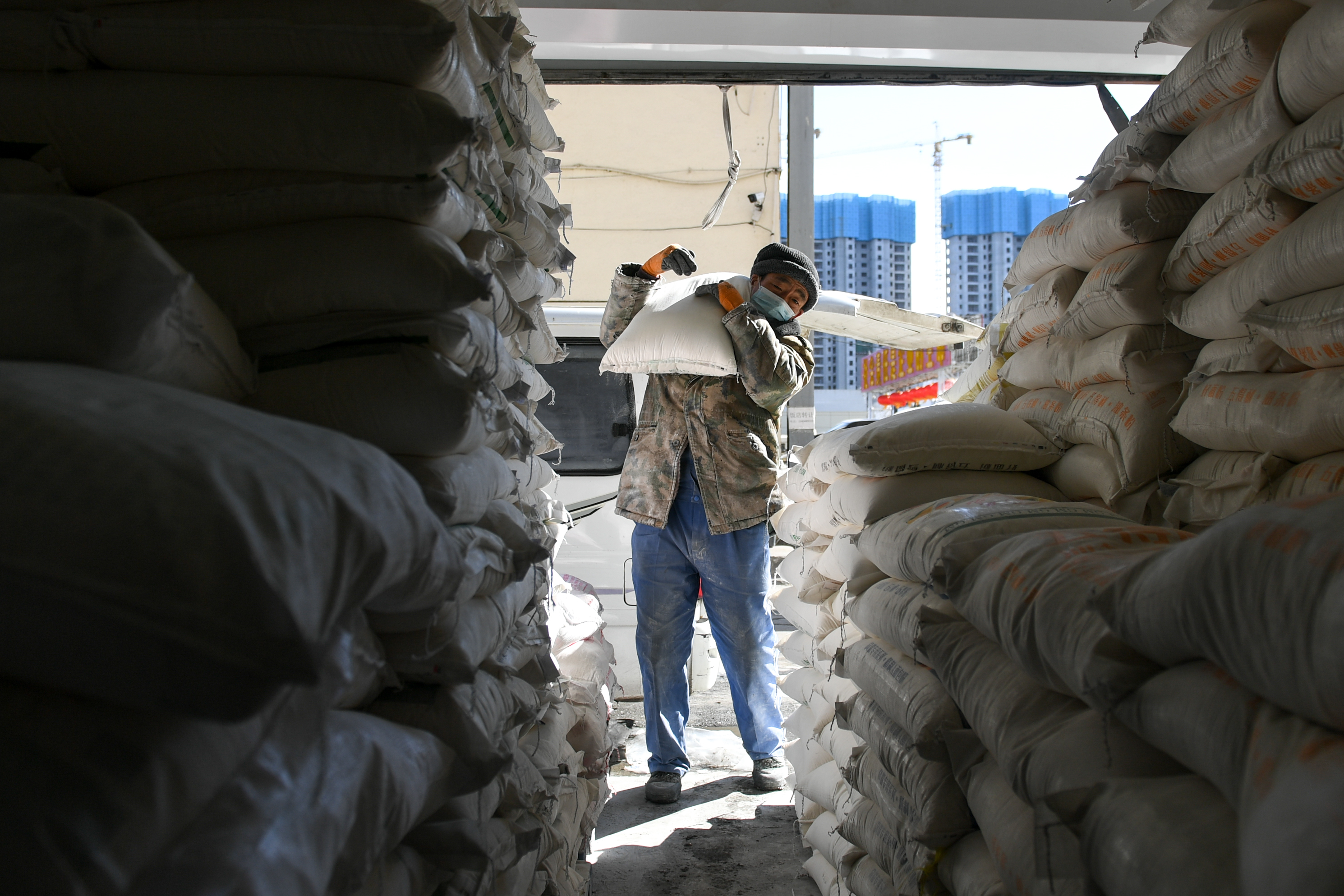 新华社照片,呼和浩特,2022年2月18日 呼和浩特:保障生活物资供应 2月18日,商户在呼和浩特市美通农产品批发市场内搬运面粉。 为应对新冠肺炎疫情,内蒙古自治区呼和浩特市协调农产品批发市场、超市等调配生活物资,提高物资运送效率,保障供应,满足市民生活需求。 新华社记者 贝赫 摄