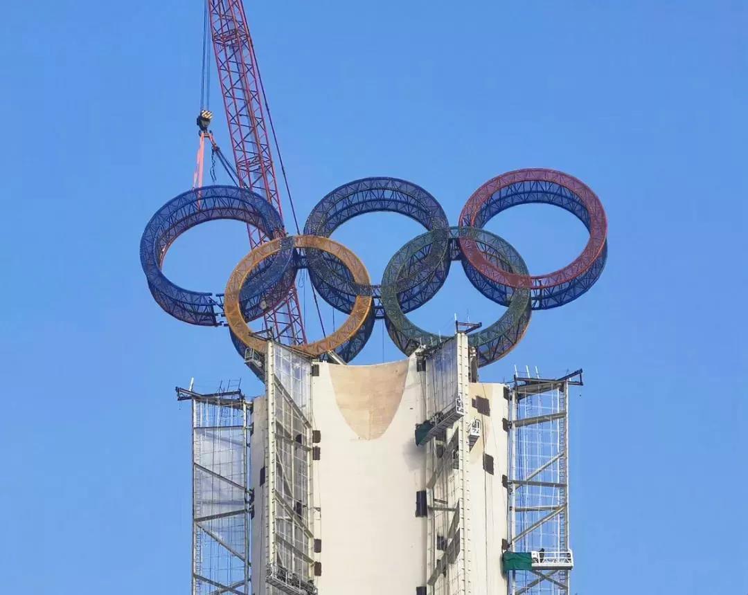 不过,延庆的冬季,风大气温低。“有时塔顶一阵风过来,170斤的壮汉都站不住。” 田磊说,在这种天气中进行高空焊接,首先就要保证“奥运五环”的每一环精准吊装到位。