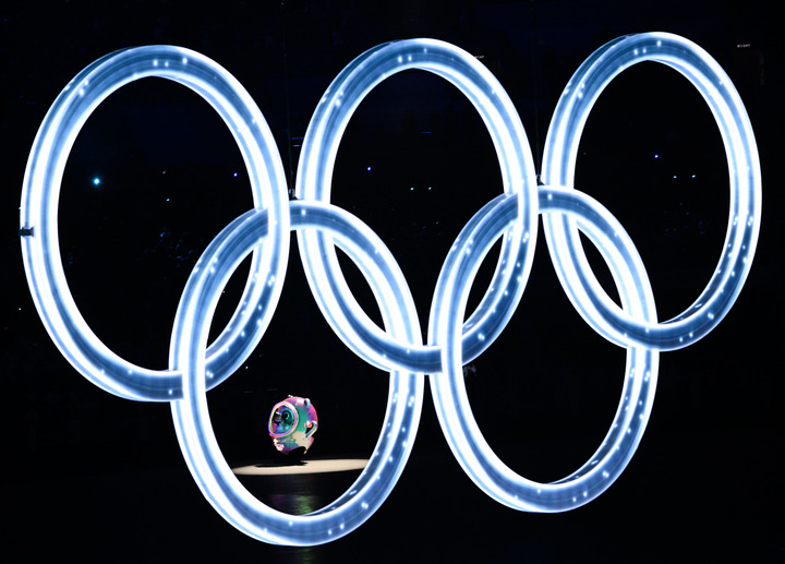 2月4日晚,第二十四届冬季奥林匹克运动会开幕式在北京国家体育场举行。这是开幕式上的“冰雪五环”。新华社记者杜宇摄