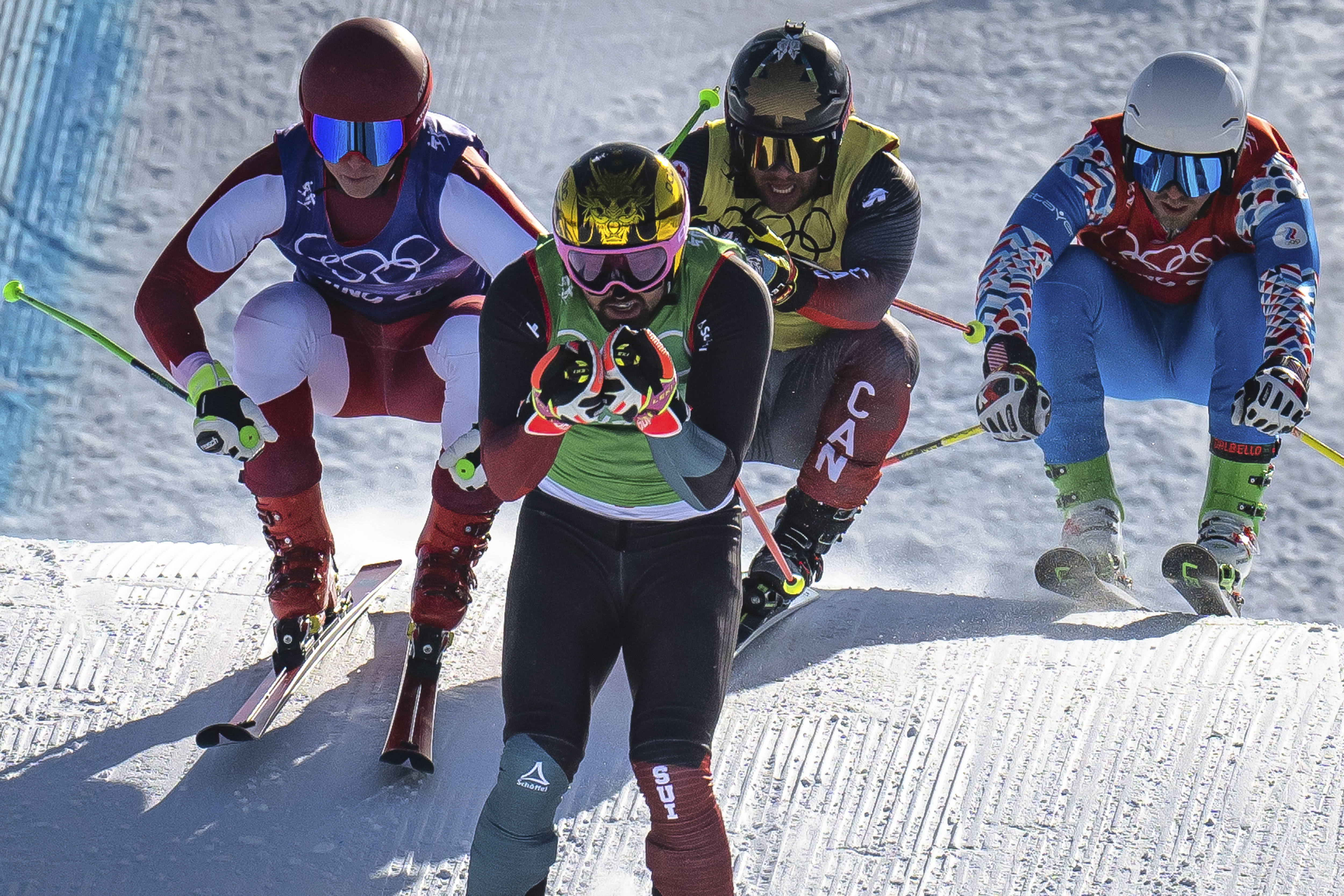 2月18日,瑞士选手里安·雷格兹(左二) 在比赛中。新华社记者肖艺九摄