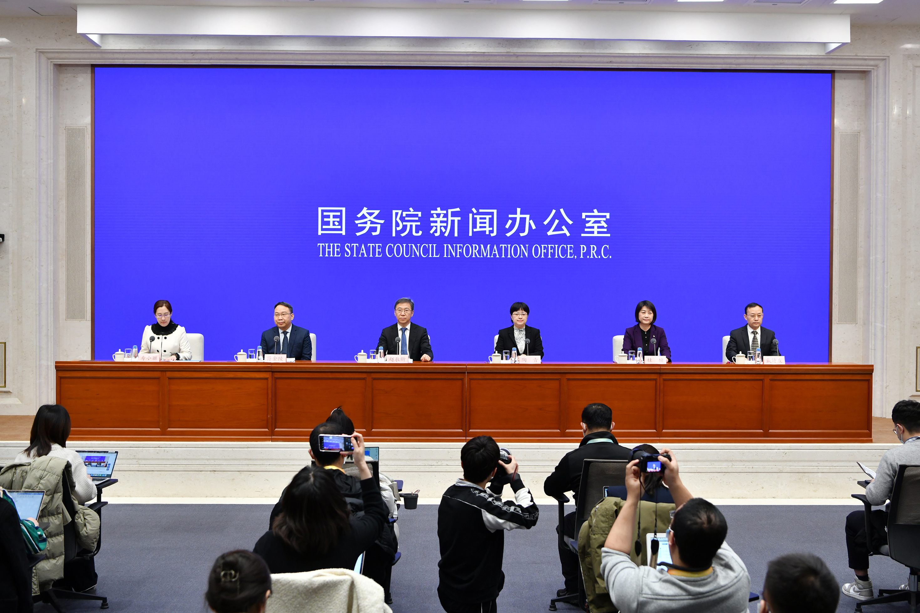 新华社照片,北京,2022年2月18日 国新办举行促进工业经济平稳增长和服务业特殊困难行业纾困发展新闻发布会 2月18日,国务院新闻办公室在北京举行新闻发布会,请国家发展和改革委党组成员、秘书长赵辰昕,工业和信息化部运行监测协调局负责人陶青、财政部经济建设司司长符金陵、人力资源和社会保障部失业保险司司长桂桢、国家税务总局政策法规司负责人戴诗友介绍促进工业经济平稳增长和服务业特殊困难行业纾困发展有关措施,并答记者问。 新华社记者 李鑫 摄