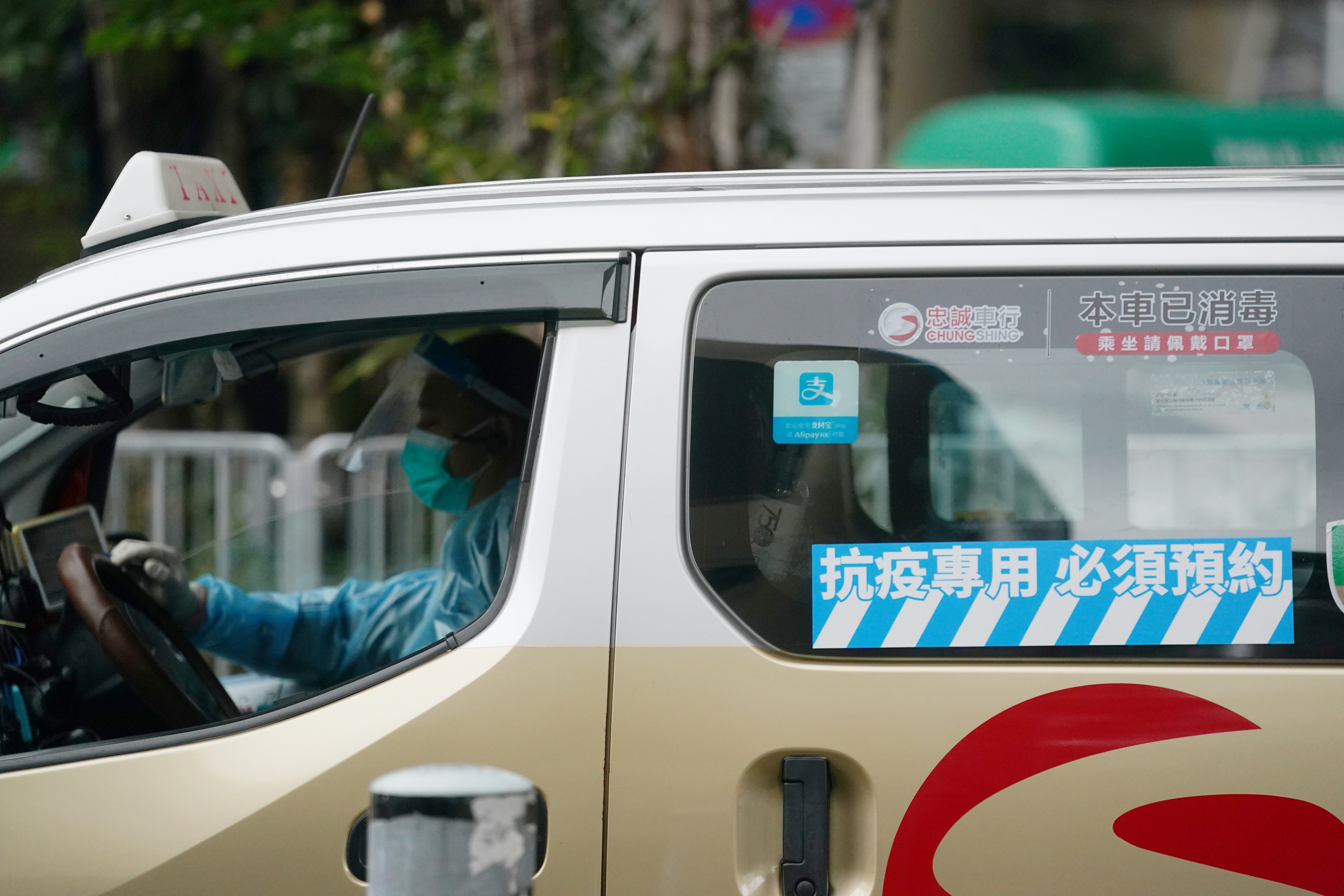 新华社照片,香港,2022年2月18日 齐心抗疫,为香港撑起一片蓝天 2月18日,在香港沙田,自发加入“抗疫的士专车”的司机在待命。 (配本社同题文字稿) 新华社记者 王申 摄