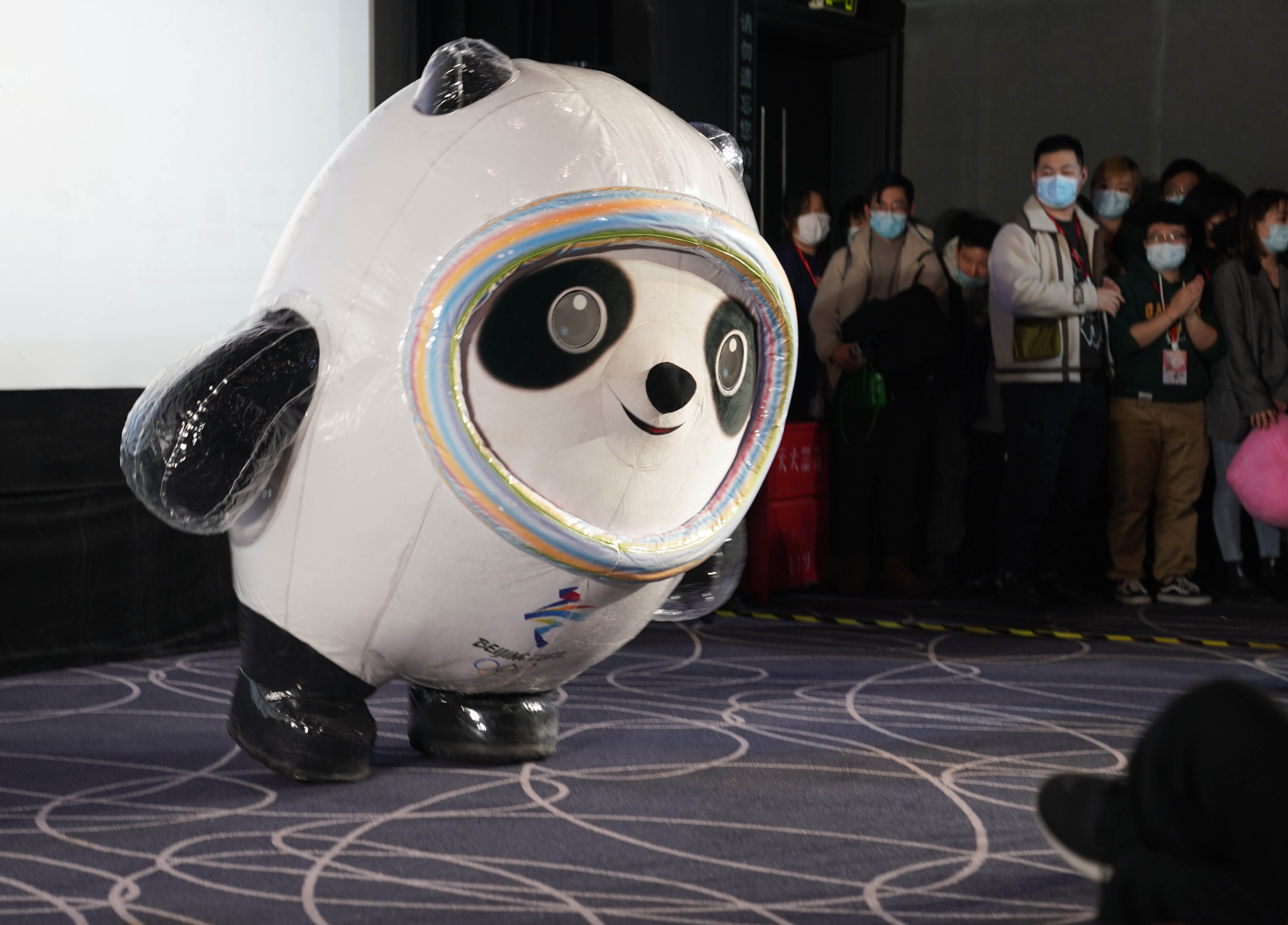 新华社照片,上海,2022年2月18日 动画电影《我们的冬奥》举行上海首映礼 2月18日,在首映礼上,“冰墩墩”与观众见面。 当日,北京冬奥组委特许动画电影《我们的冬奥》在上海美罗城举办首映礼。该影片将于2月19日上映。 新华社记者 刘颖 摄