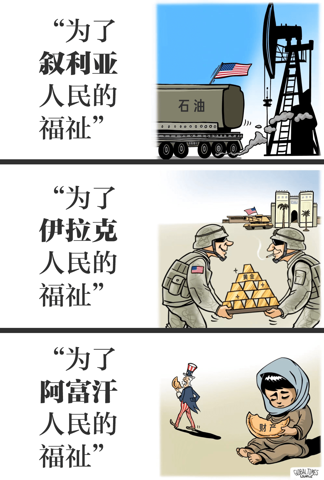 ▲ 美国为了满足一己私利,堂而皇之地从他国掠夺,上演一出出丑剧。