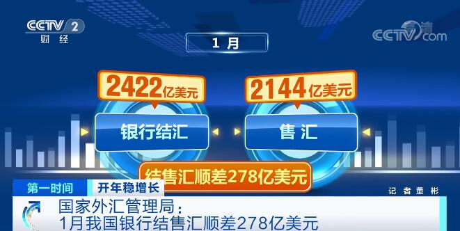 开年稳增长 | 国家外汇管理局:1月我国银行结售汇顺差278亿美元