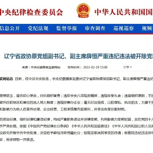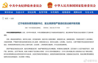 辽宁省政协原党组副书记、副主席#薛恒严重违纪违法被开除党籍#
